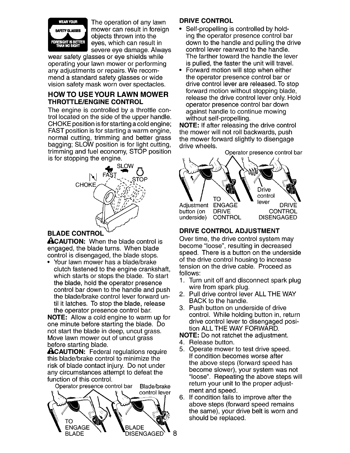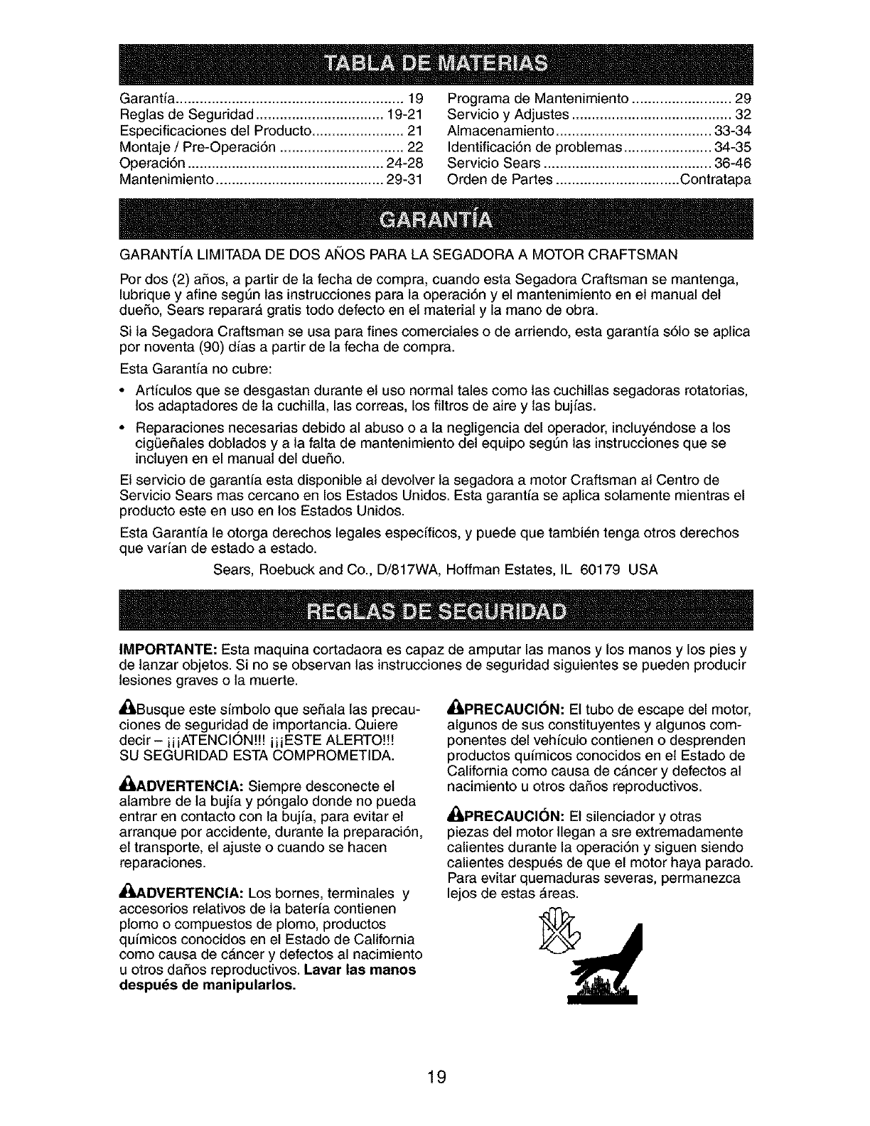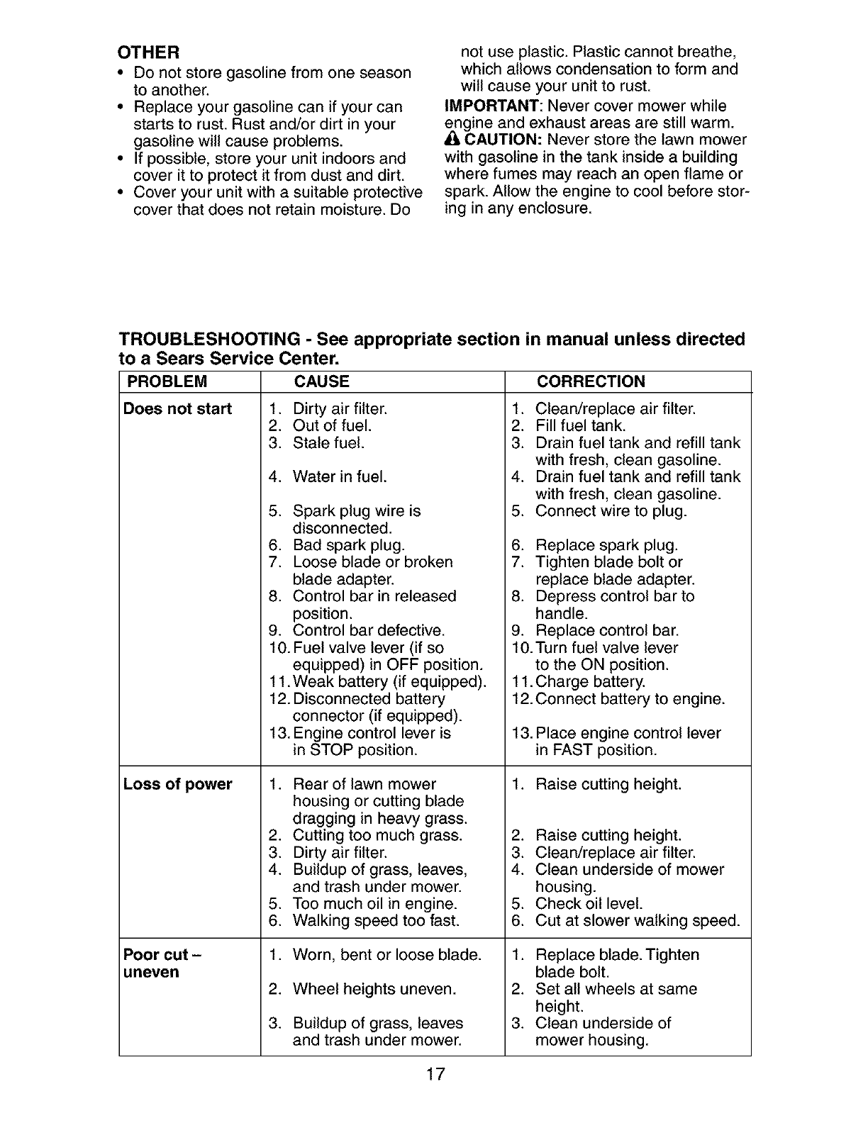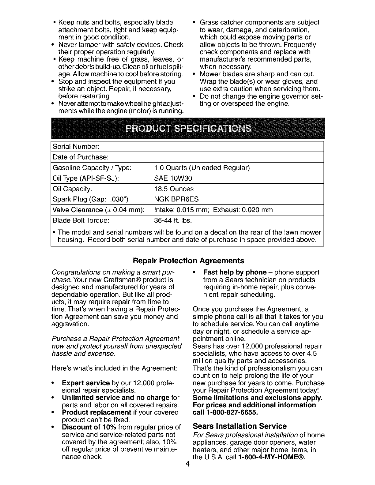 Warranty service is available by returning the Craftsman power mower to the nearest Sears