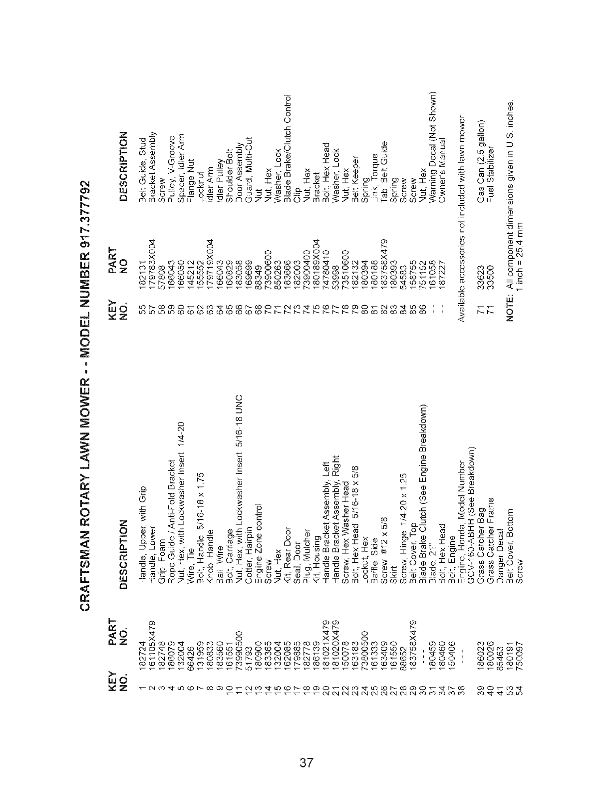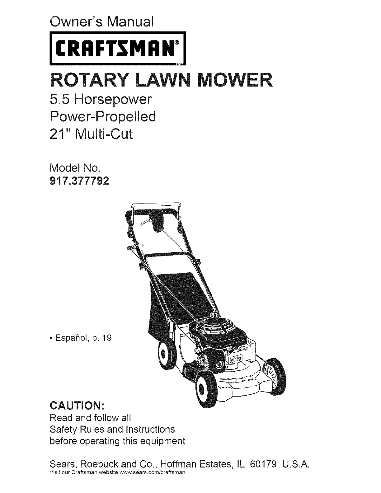 User Manual: Craftsman 917377792 917377792 CRAFTSMAN Gas, Walk Behind Lawnmower - Manuals and Guides View the owners manual for your CRAFTSMAN Gas, Walk Behind Lawnmower #917377792. Home:Lawn & Garden Parts:Craftsman Parts:Craftsman Gas, Walk Behind Lawnmower Manual