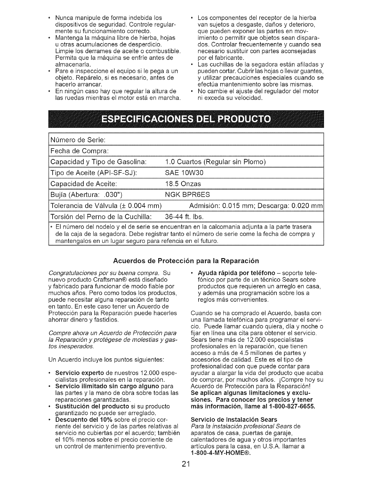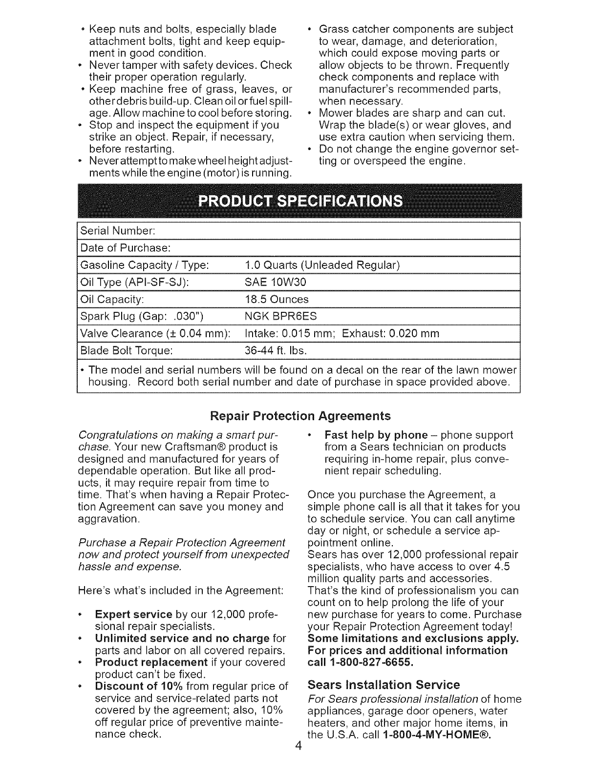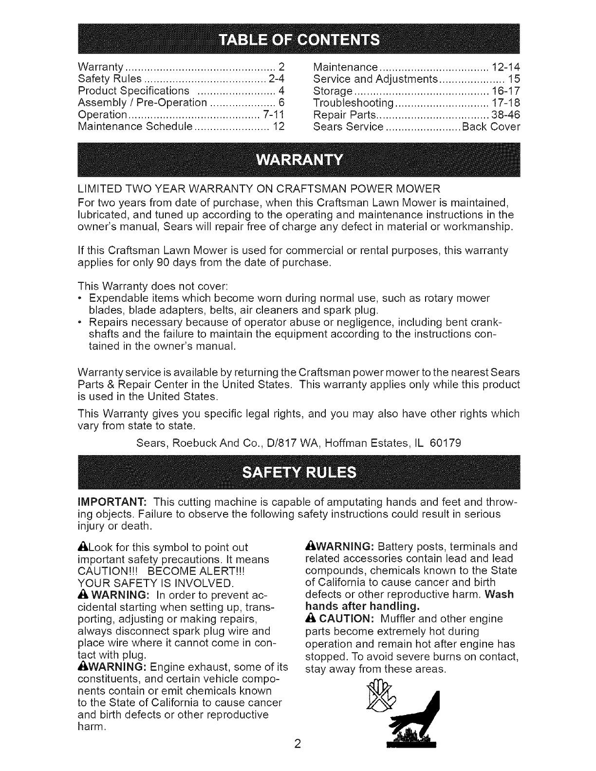 Warranty service is available by returning the Craftsman power mower to the nearest Sears