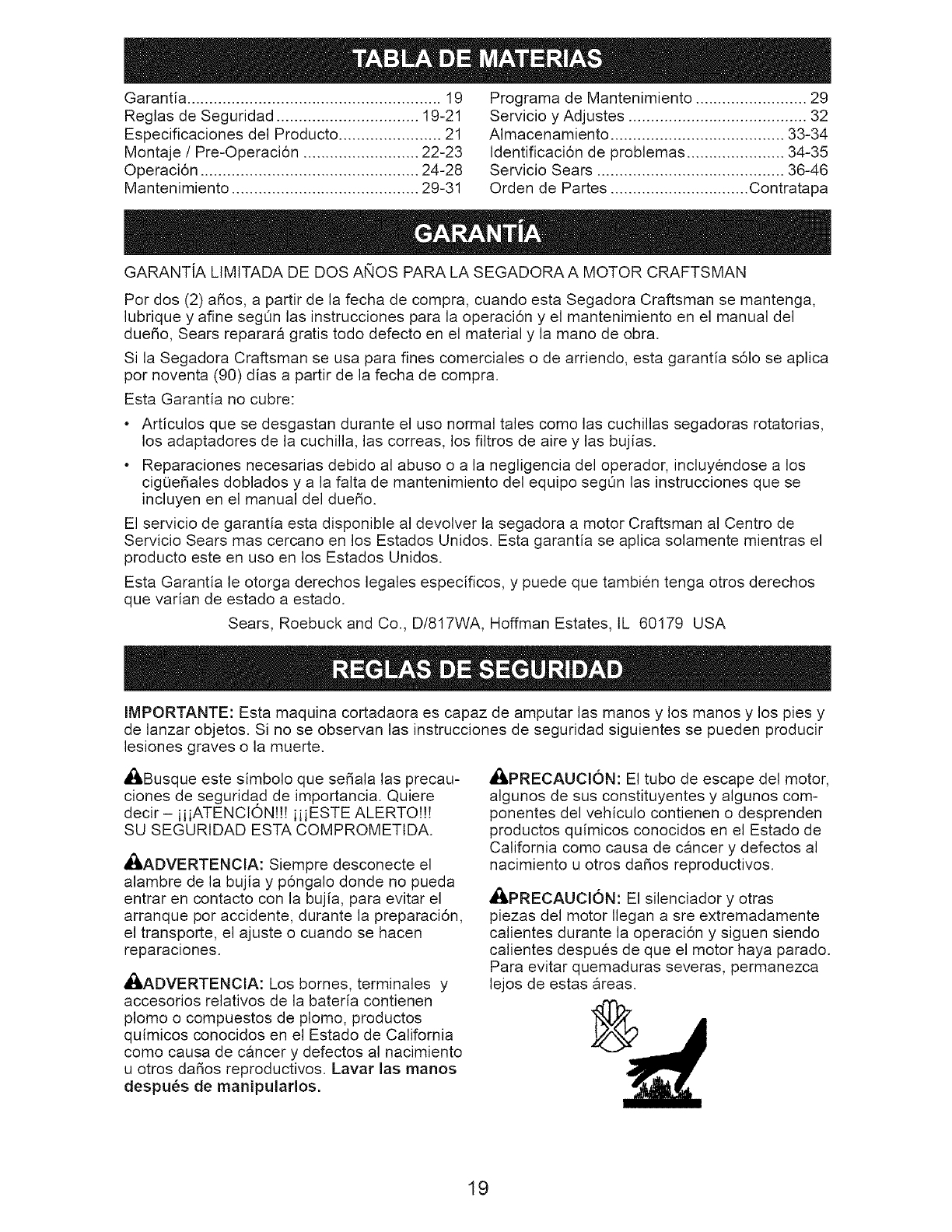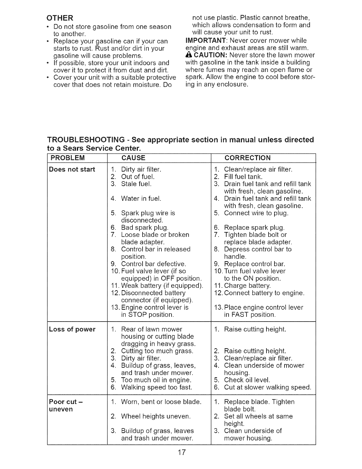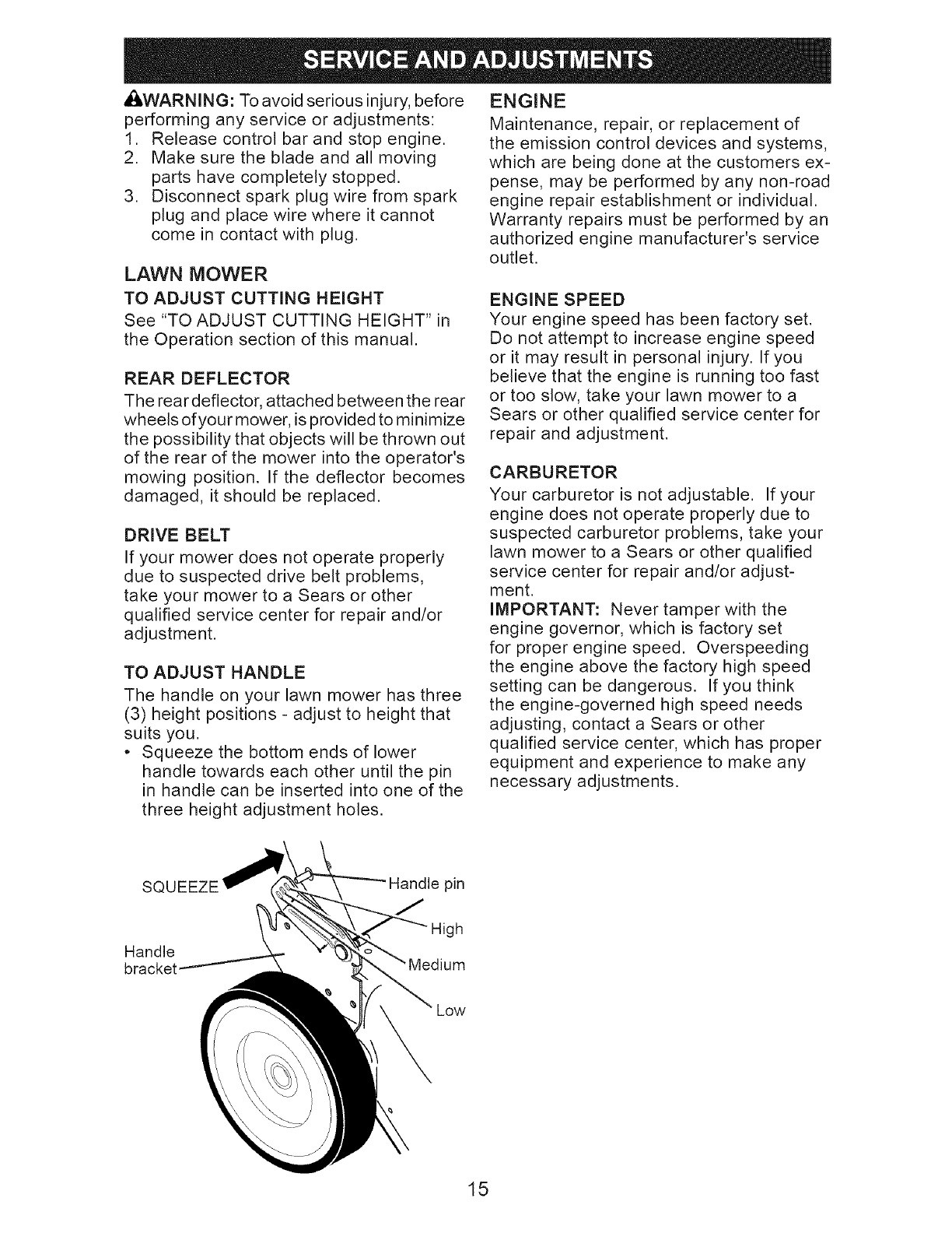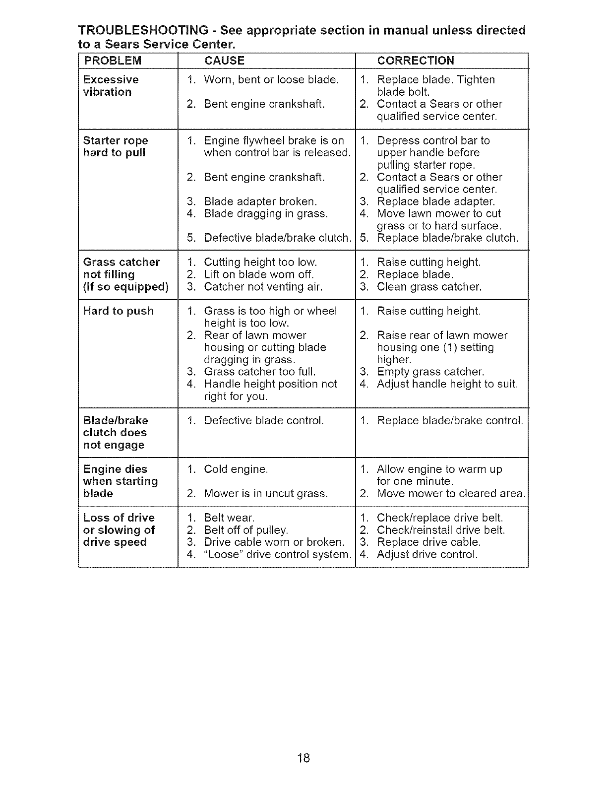 Warranty service is available by returning the Craftsman power mower to the nearest Sears