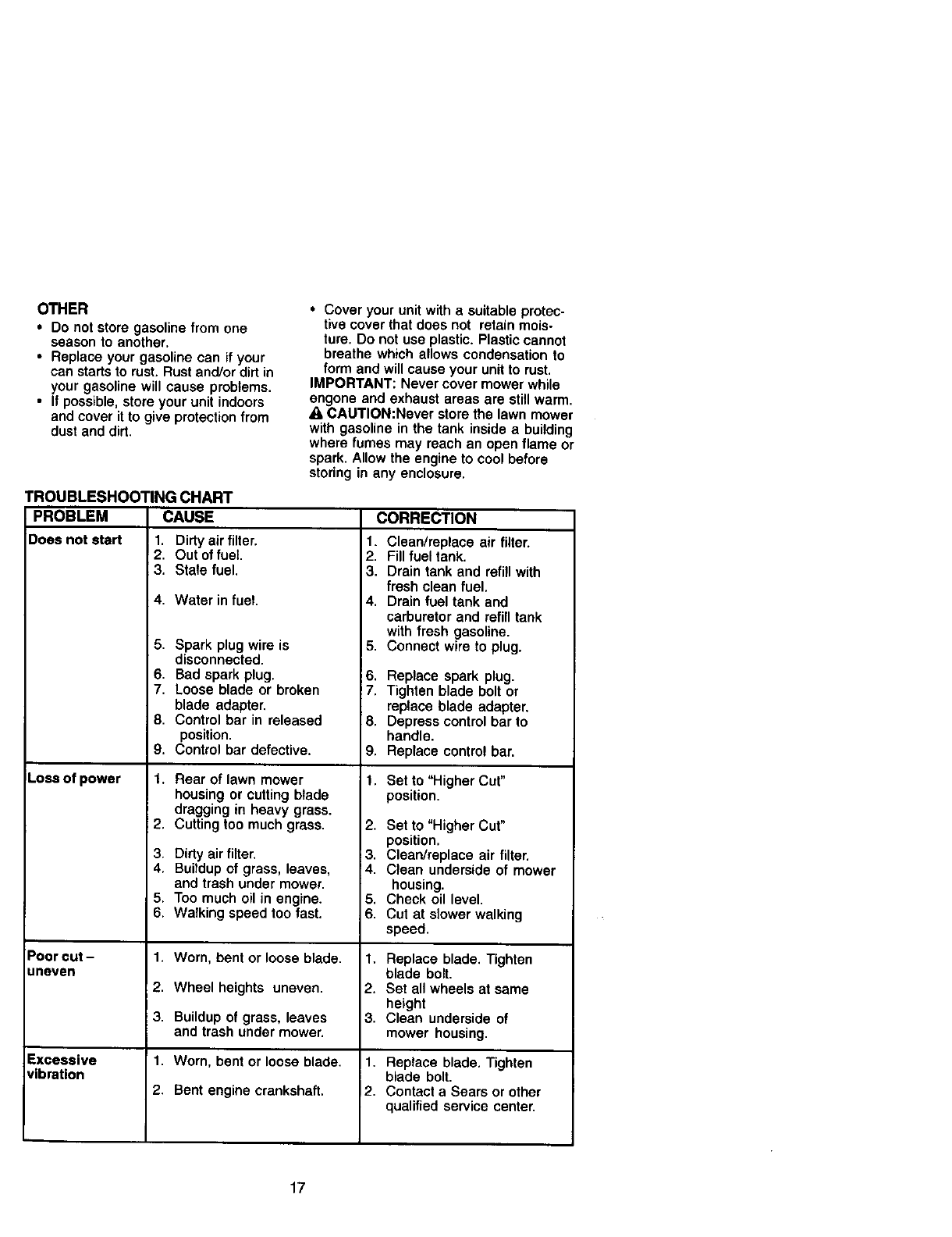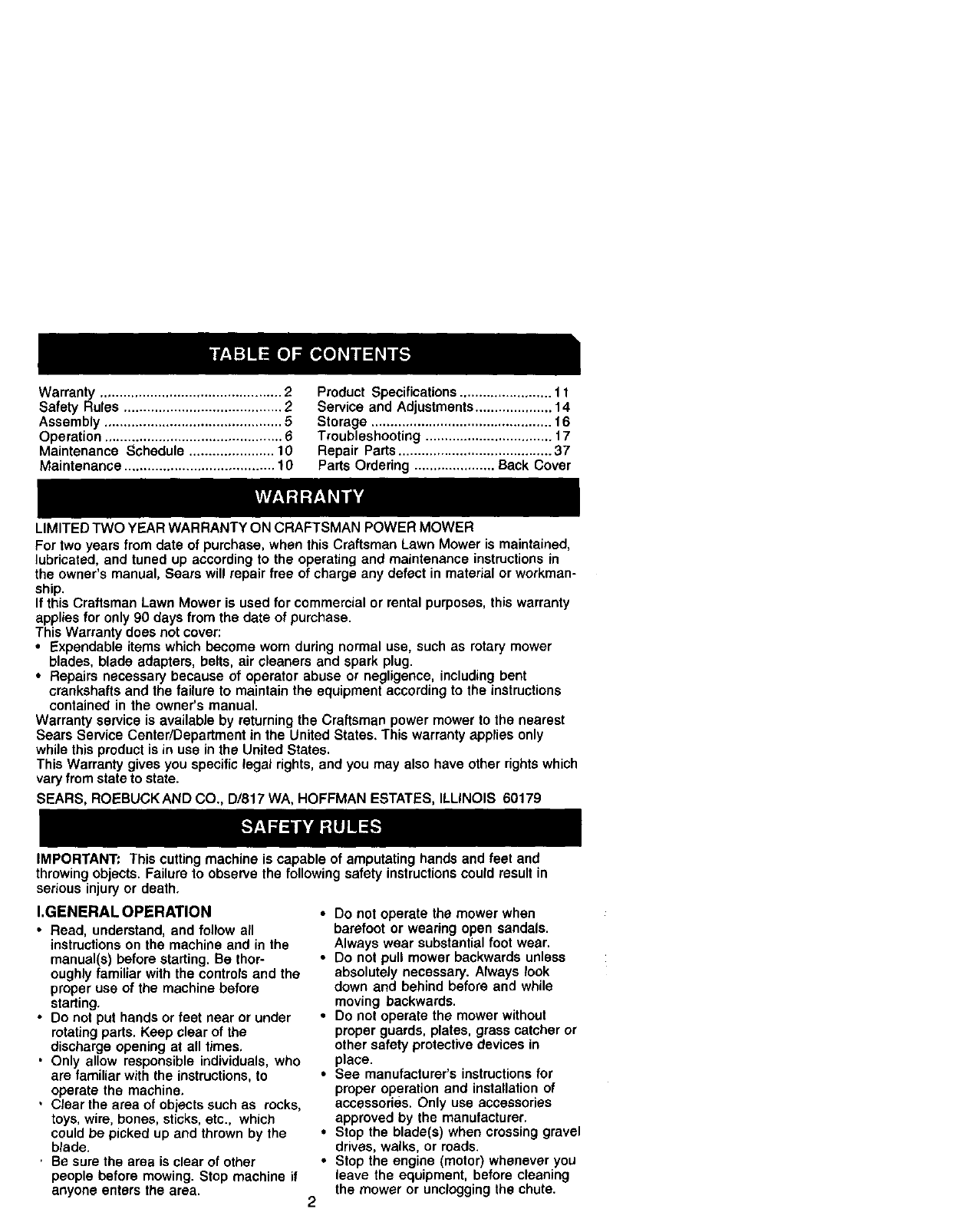 LIMITED TWO YEAR WARRANTY ON CRAFTSMAN POWER MOWER