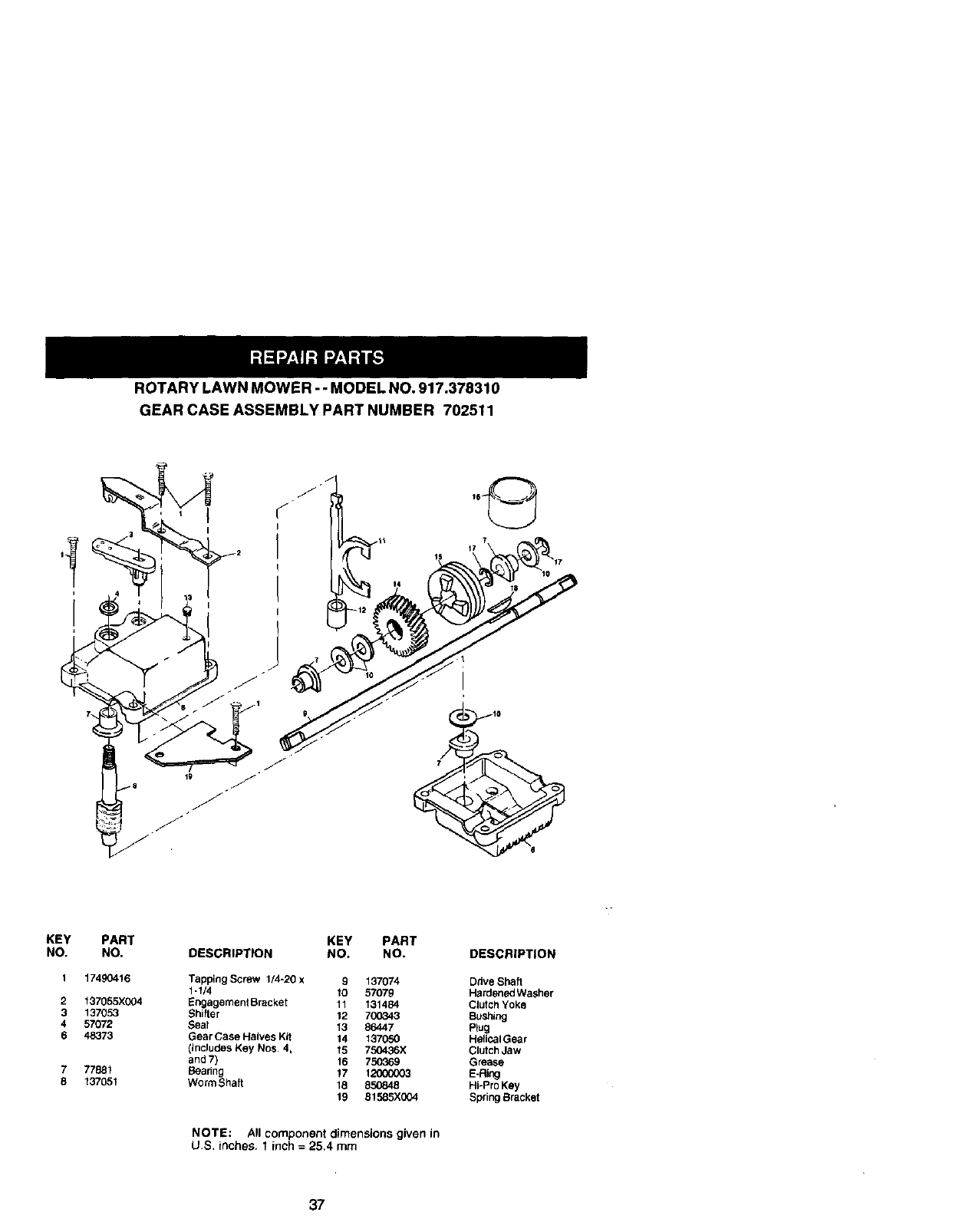 Repair Parts ........................................ 37