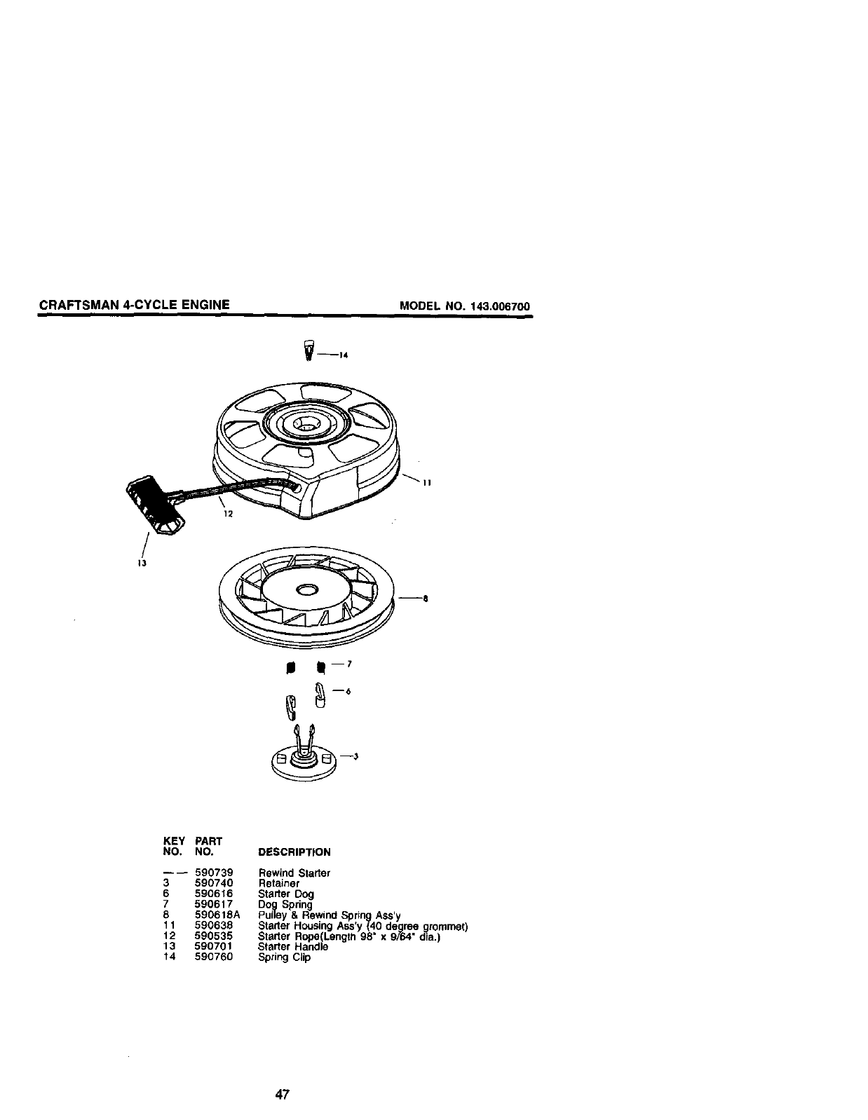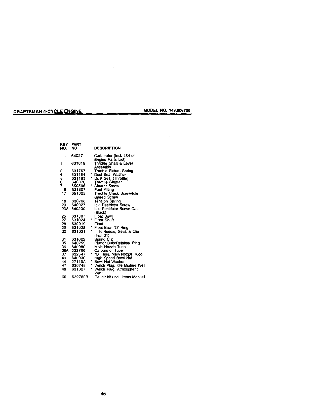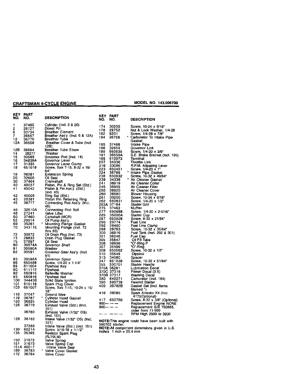 CRAFTSMAN 4-CYCLE ENGINE MODEL NO, 143.006700