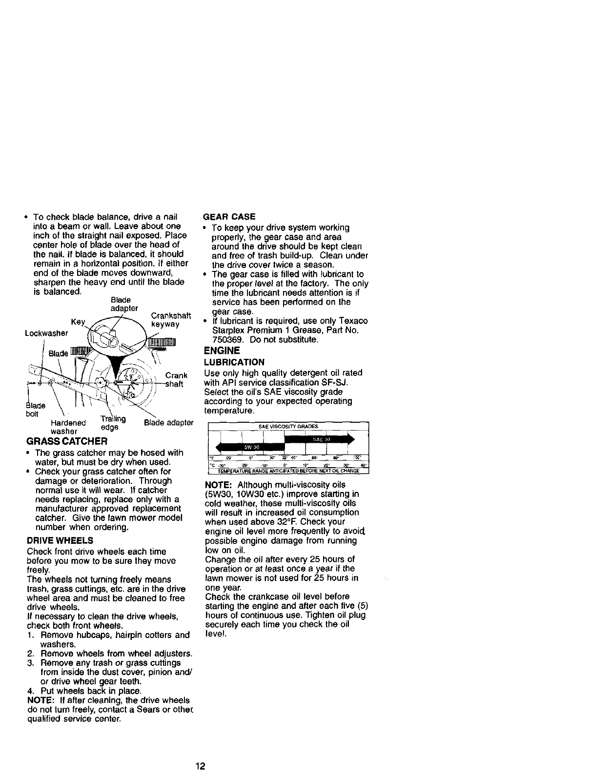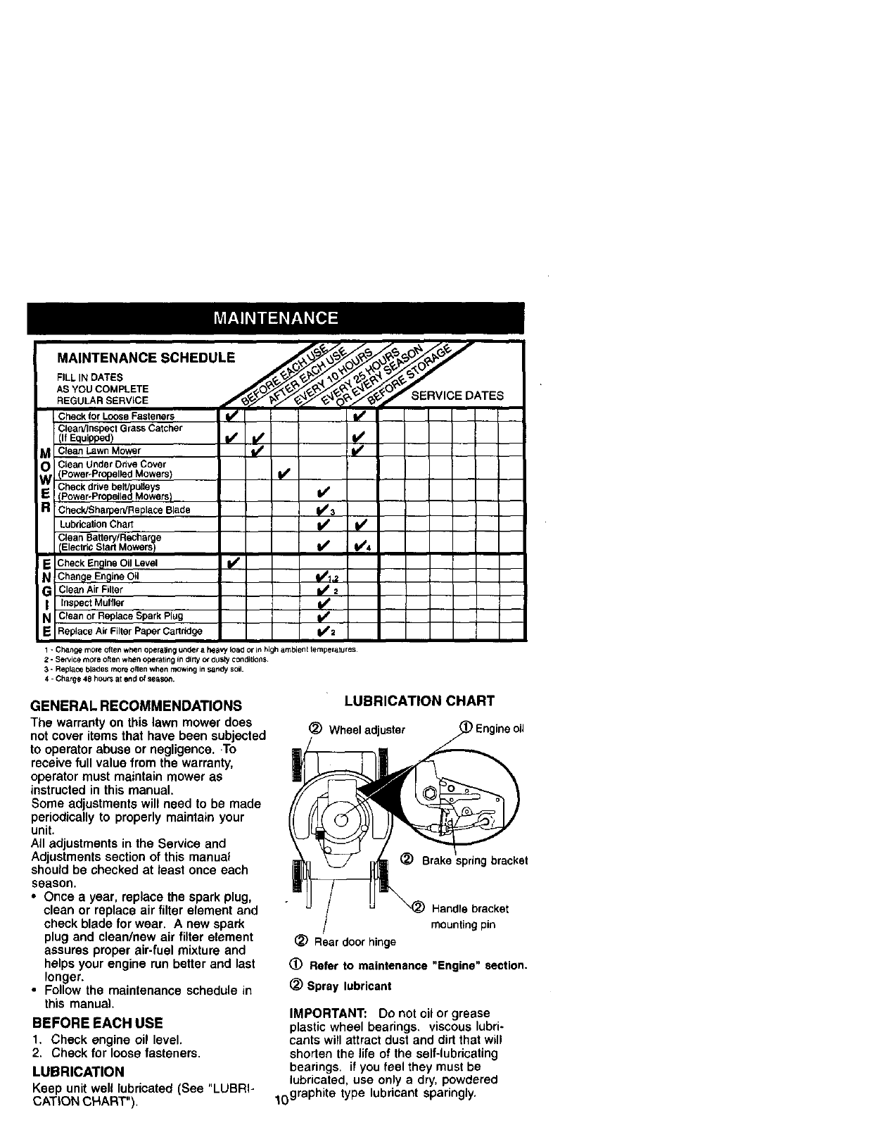 blades, blade adapters, belts, air cleaners and spark plug.