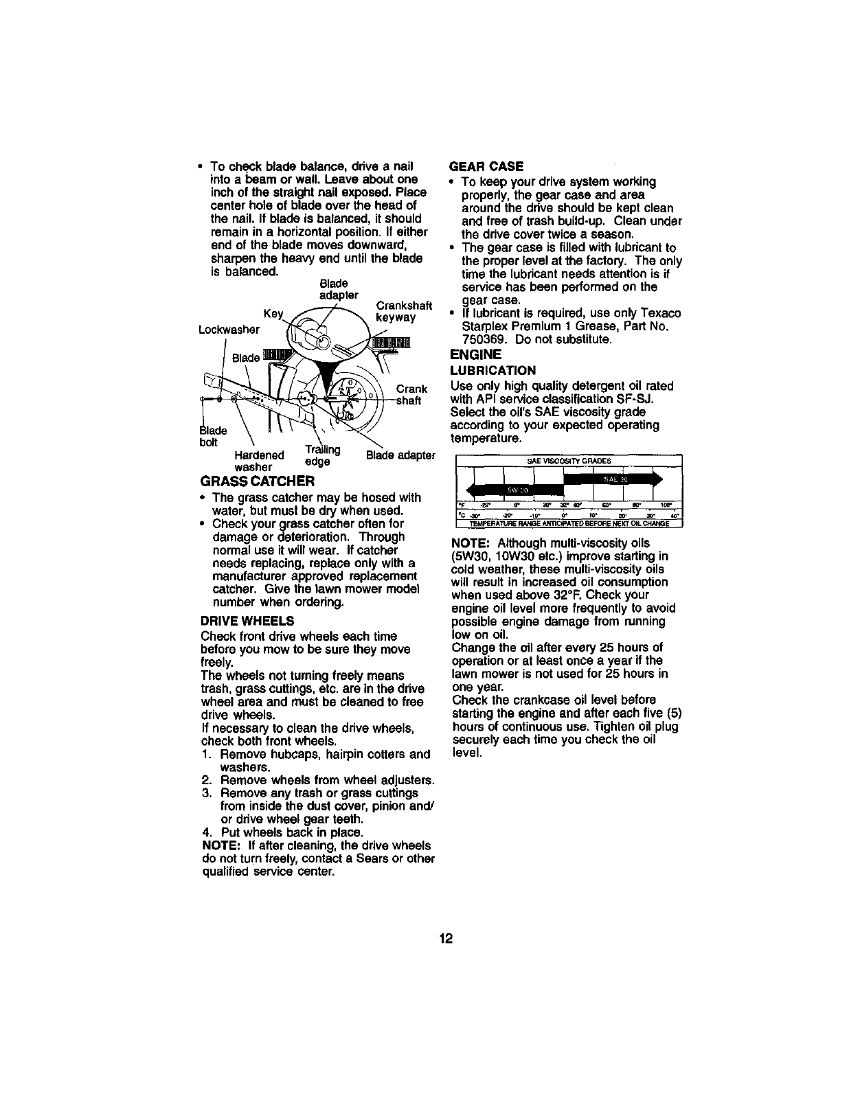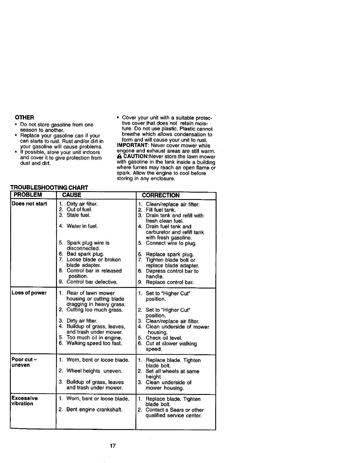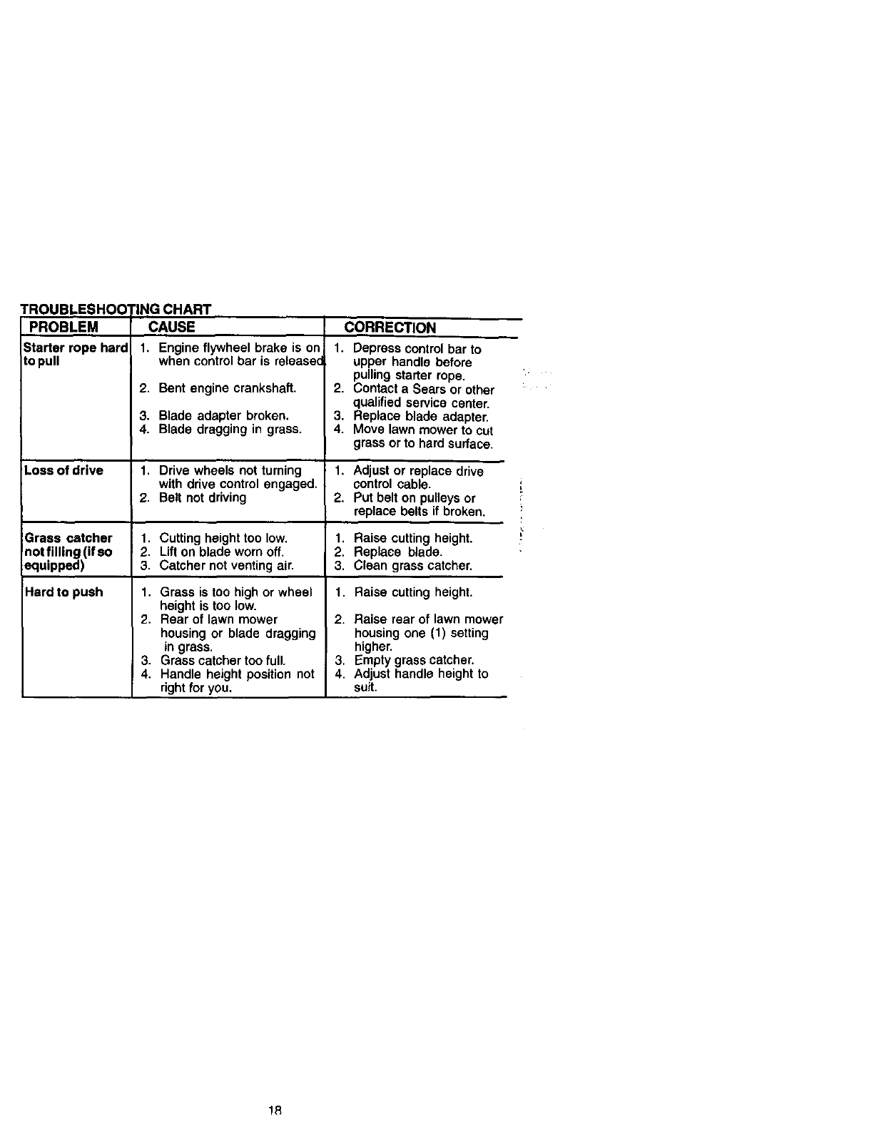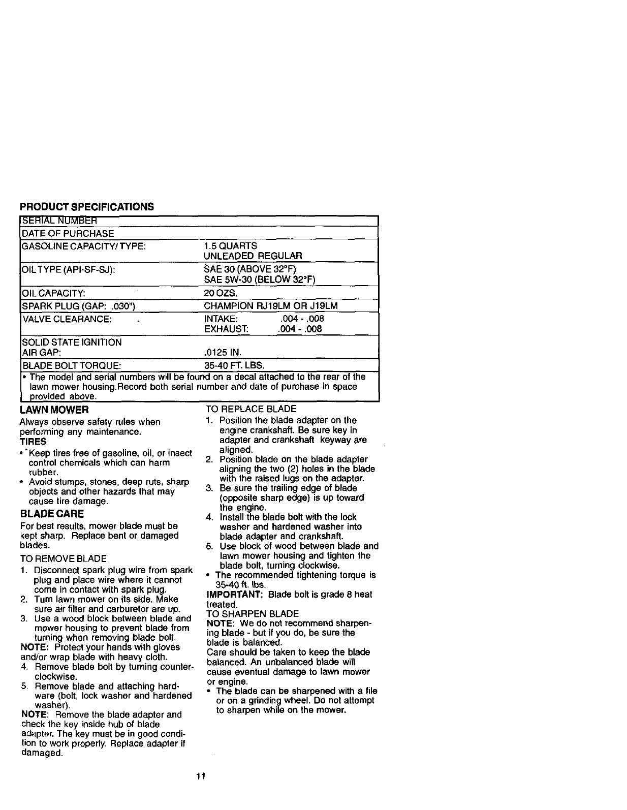 blades, blade adapters,belts, air cleanersand spark plug.