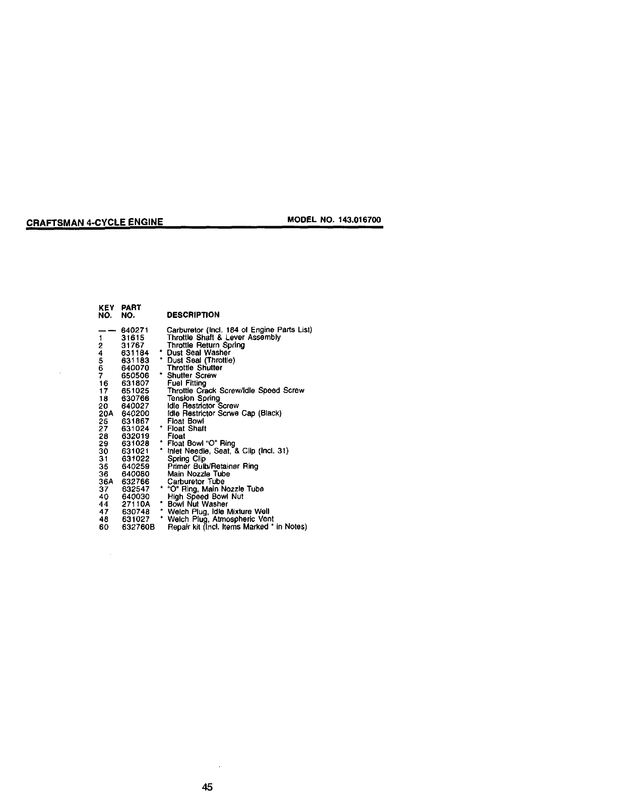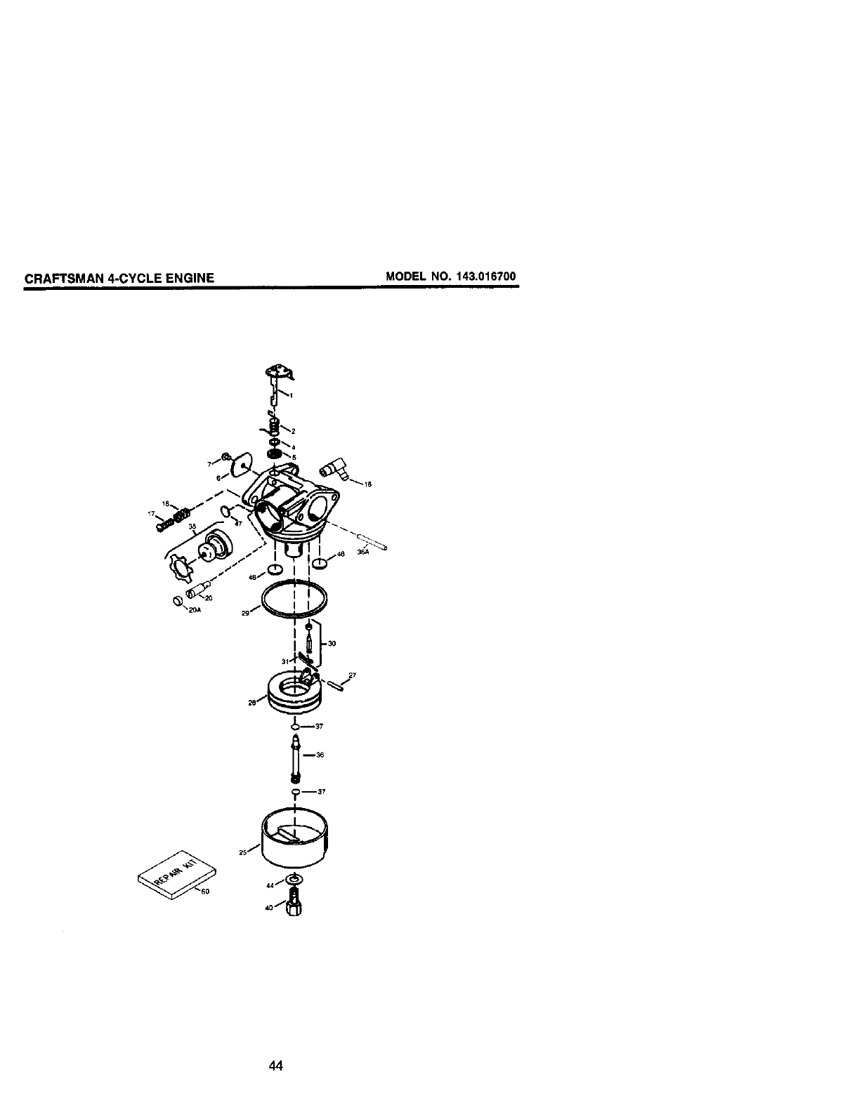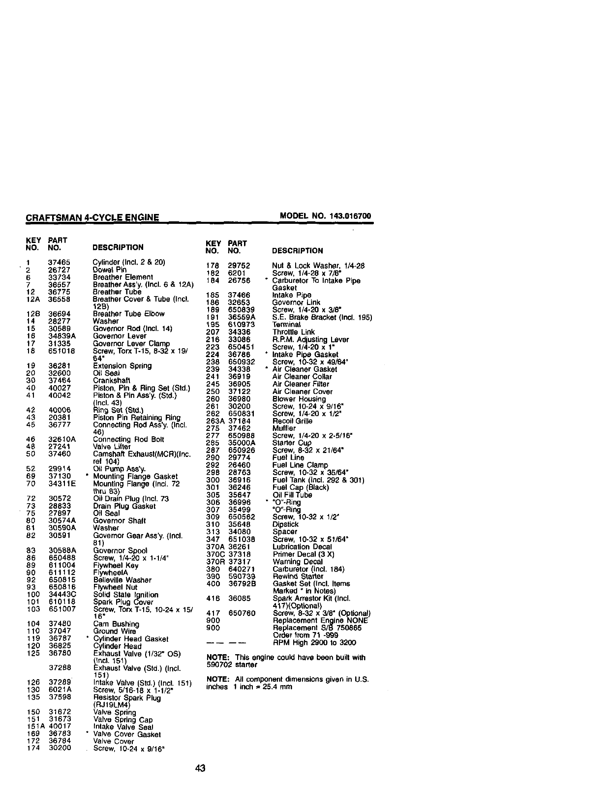 CRAFTSMAN 4-CYCLE ENGINE MODEL NO. 143,016700