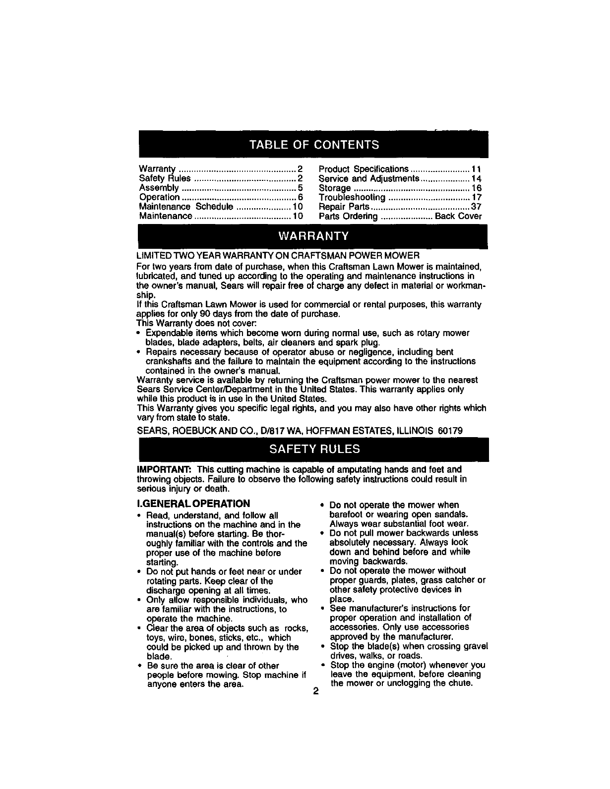 Safety Rules ......................................... 2