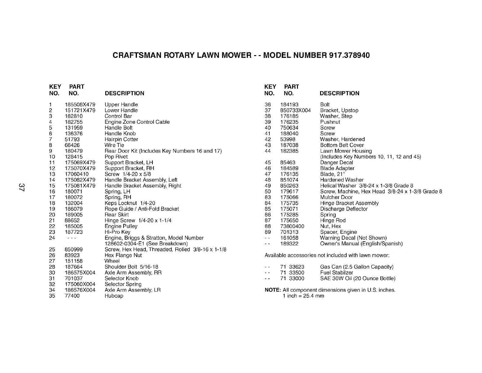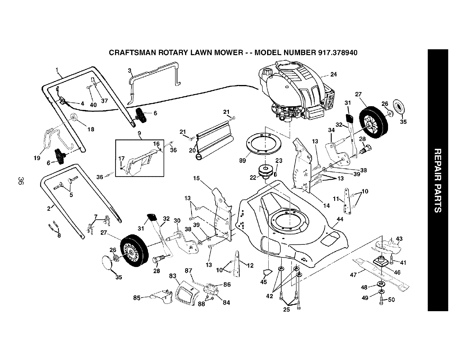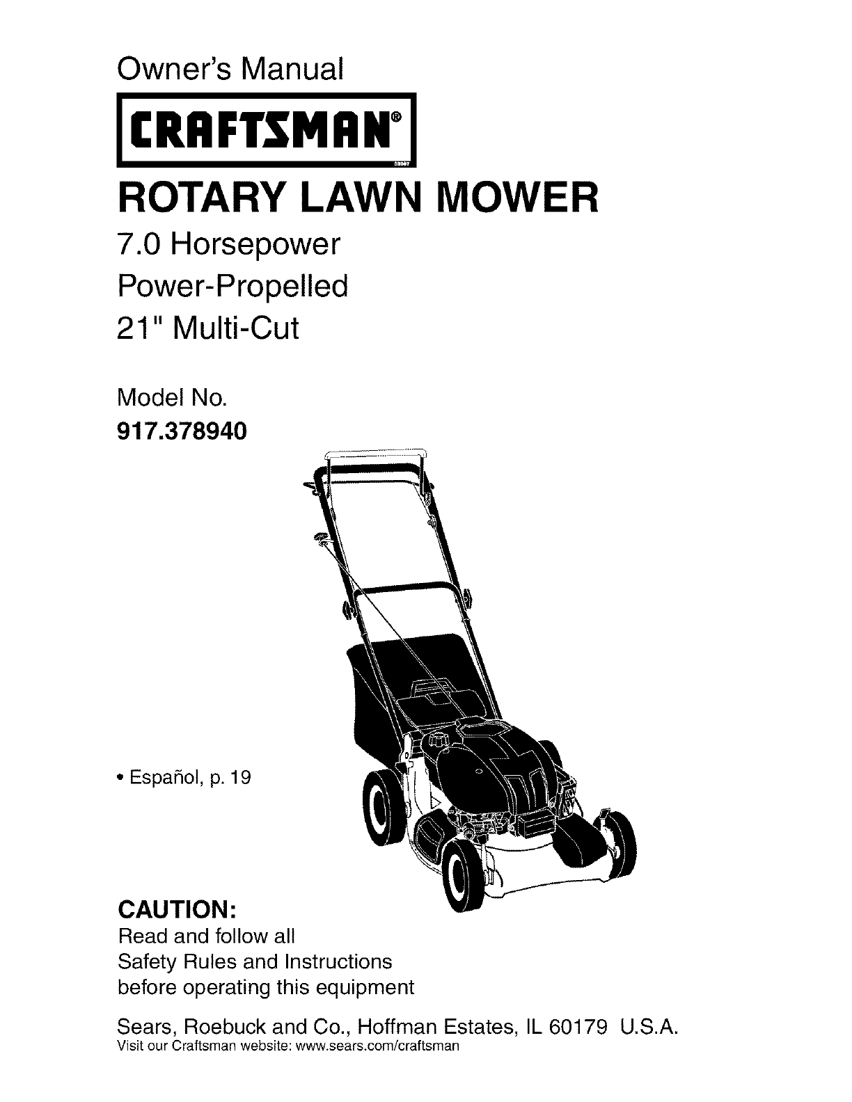 User Manual: Craftsman 917378940 917378940 CRAFTSMAN Gas, Walk Behind Lawnmower - Manuals and Guides View the owners manual for your CRAFTSMAN Gas, Walk Behind Lawnmower #917378940. Home:Lawn & Garden Parts:Craftsman Parts:Craftsman Gas, Walk Behind Lawnmower Manual