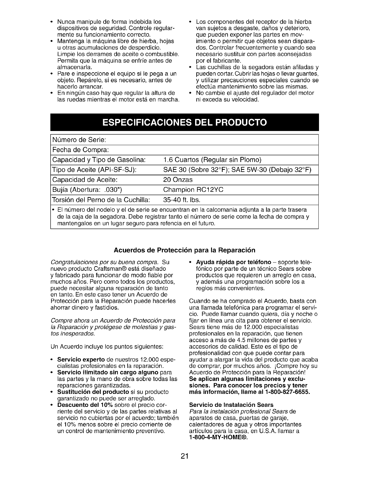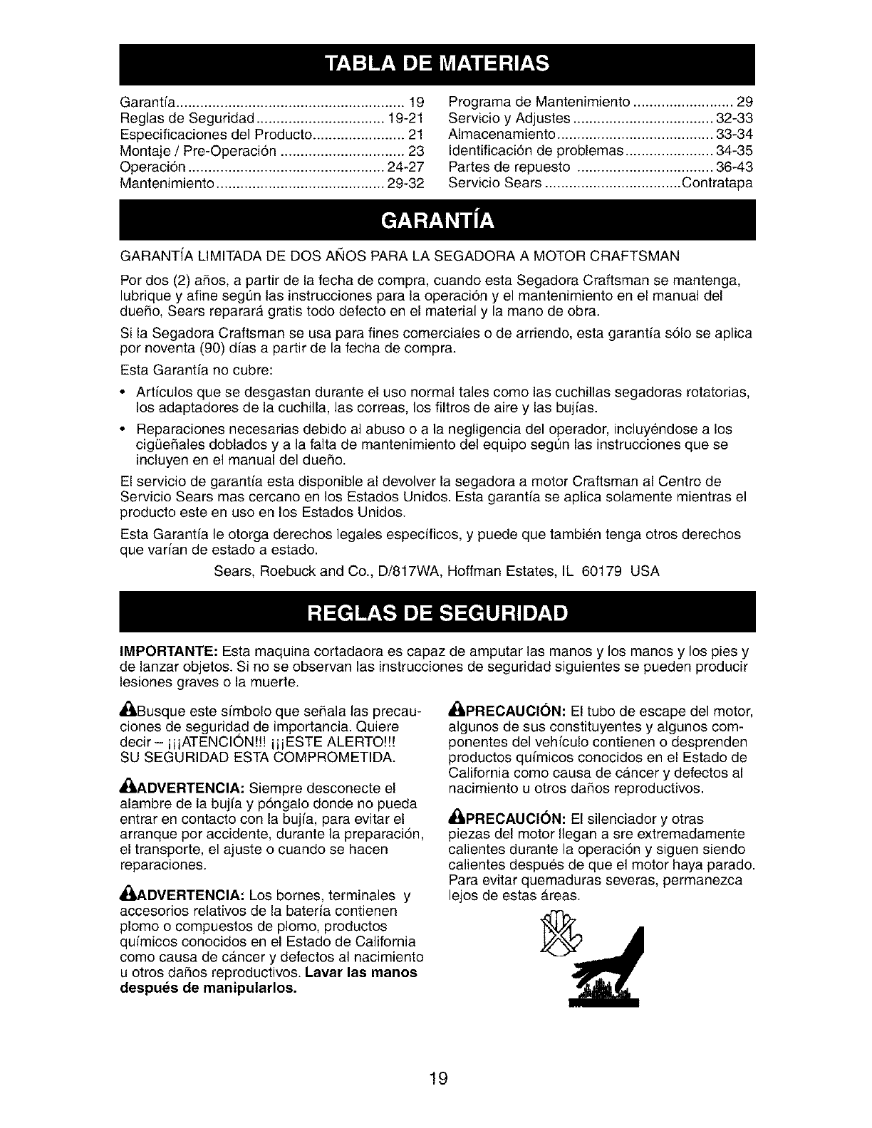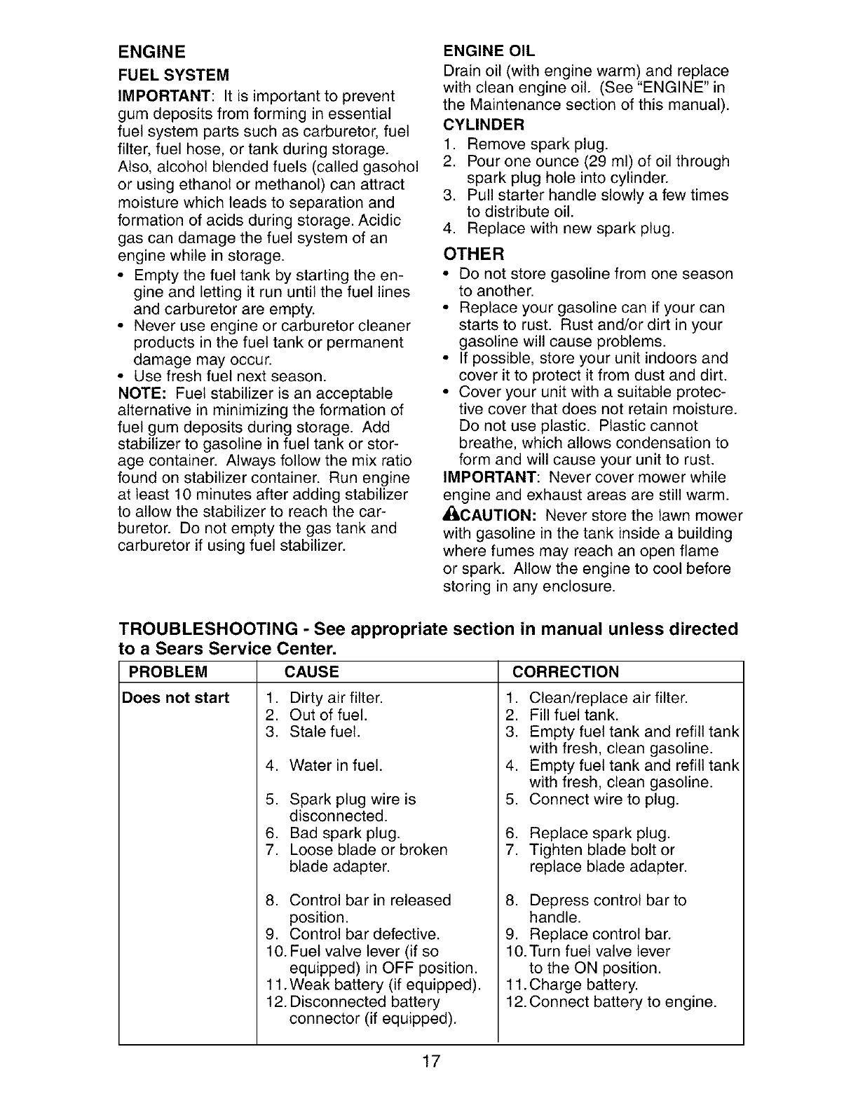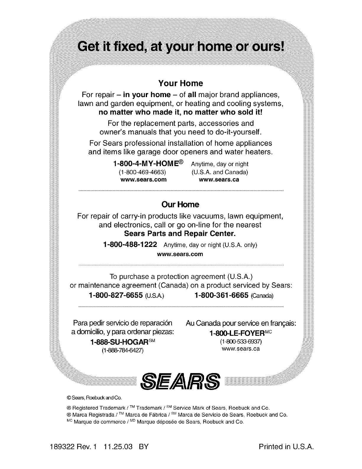Sears Service .......................... Back Cover