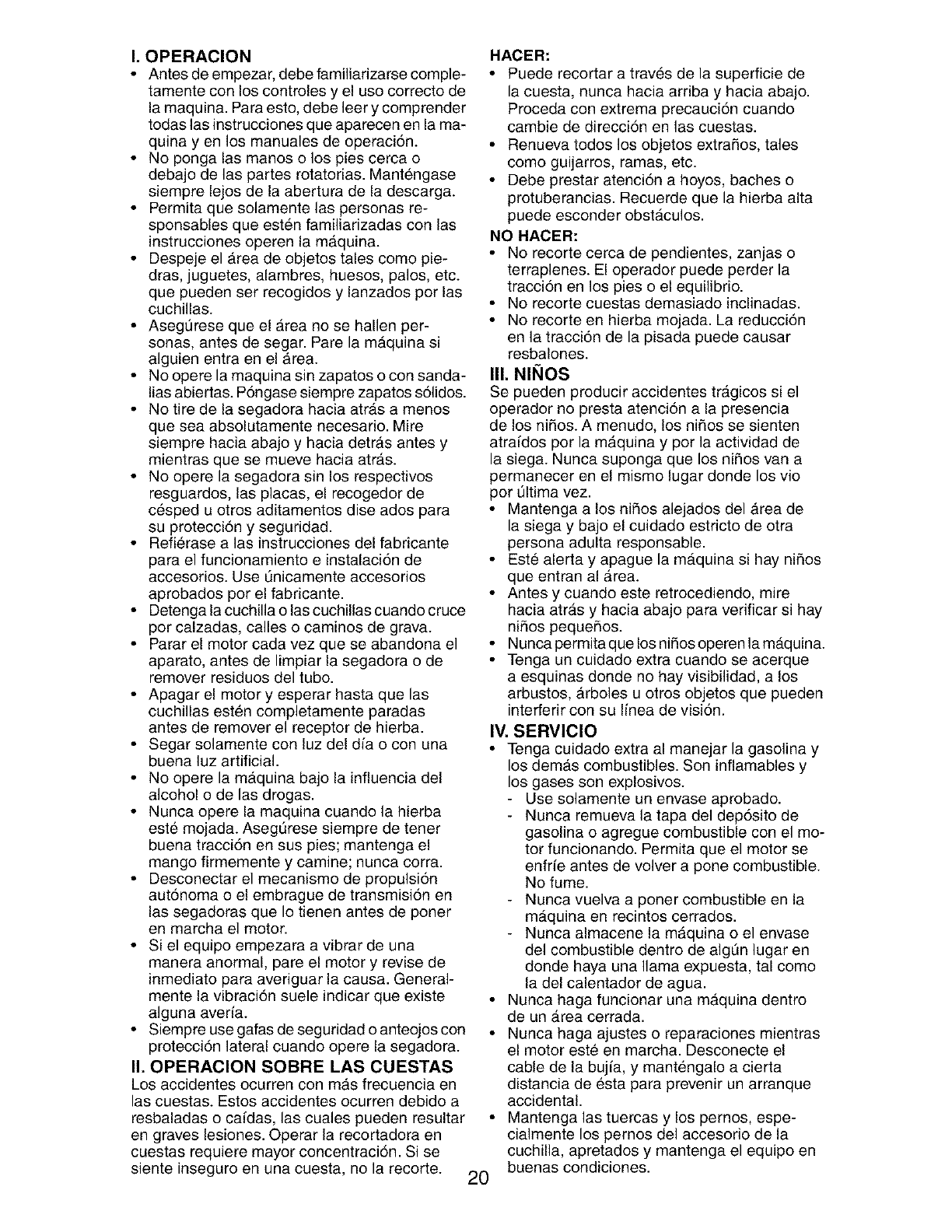 lubricated, and tuned up according to the operating and maintenance instructions in the