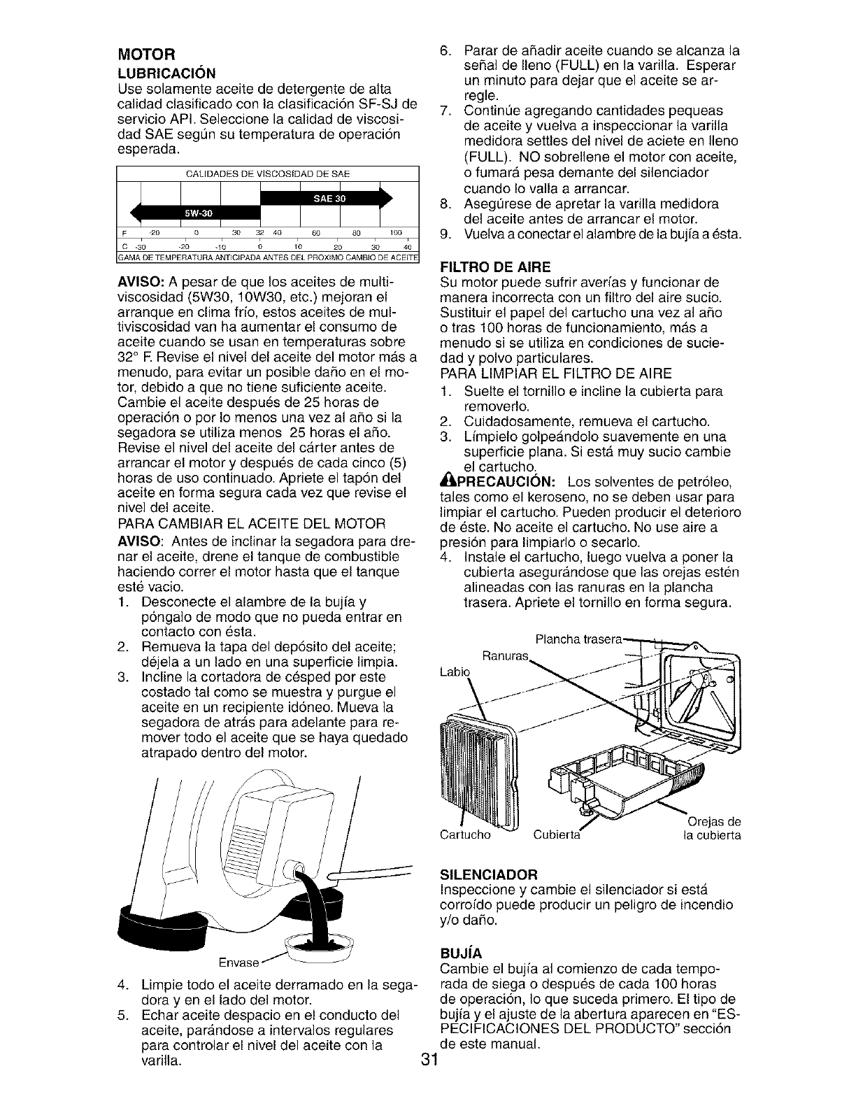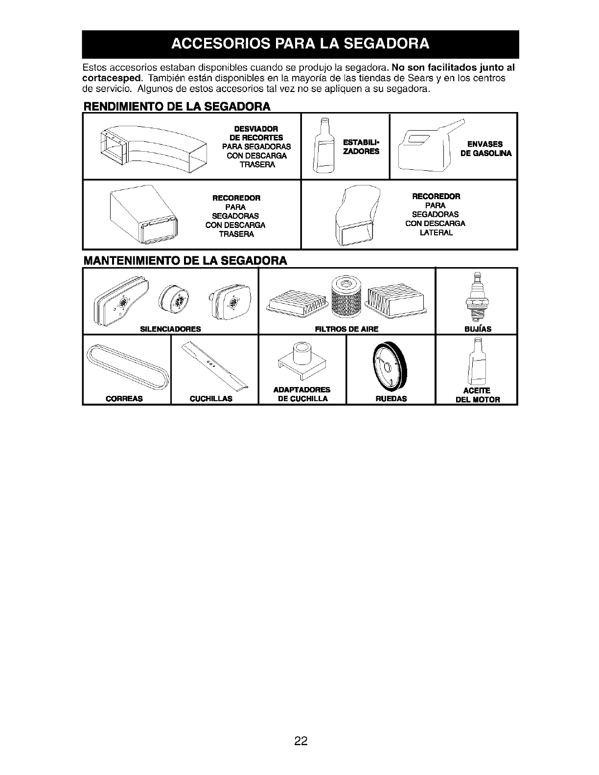 blades, blade adapters, belts, air cleaners and spark plug.