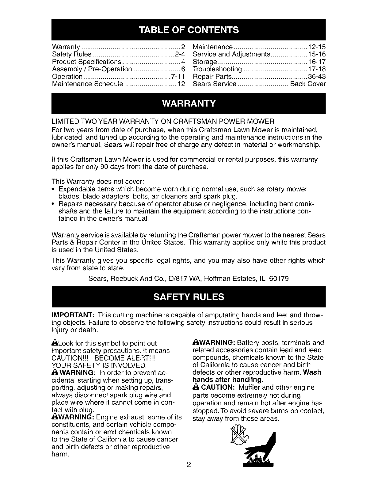 LIMITED TWO YEAR WARRANTY ON CRAFTSMAN POWER MOWER