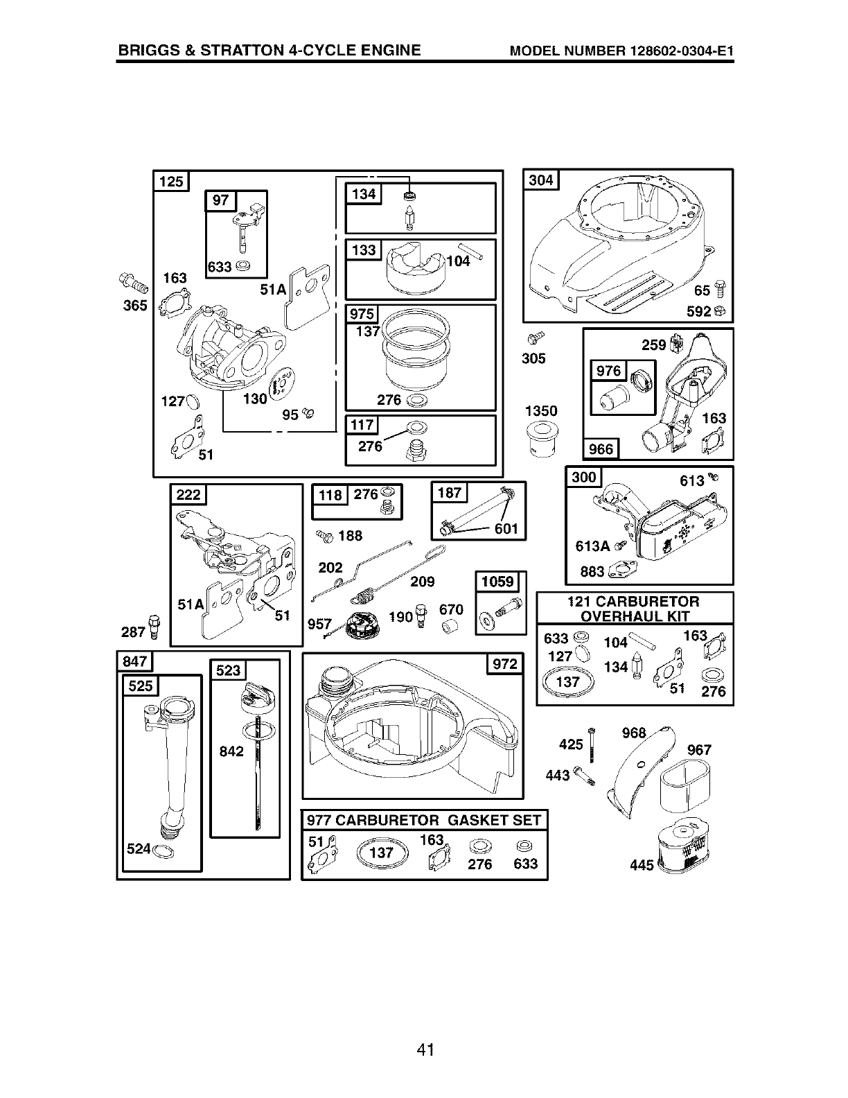 G Included in Carburetor Overhaul Kit, Key No, 121