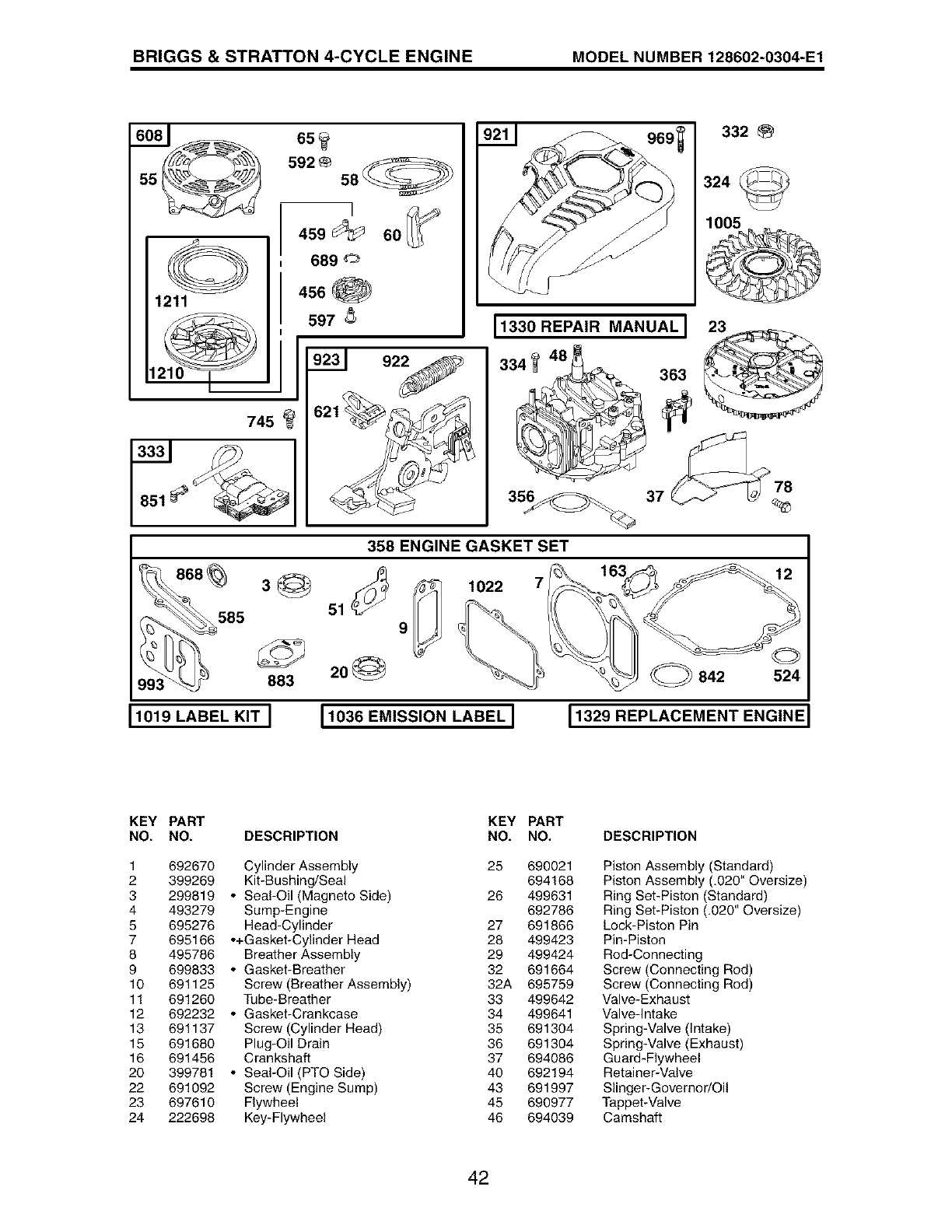 Included in Engine Gasket Set, Key No, 358