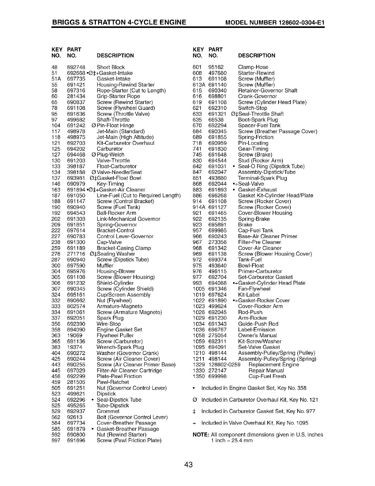+ Included in Valve Overhaul Kit, Key No. 1095