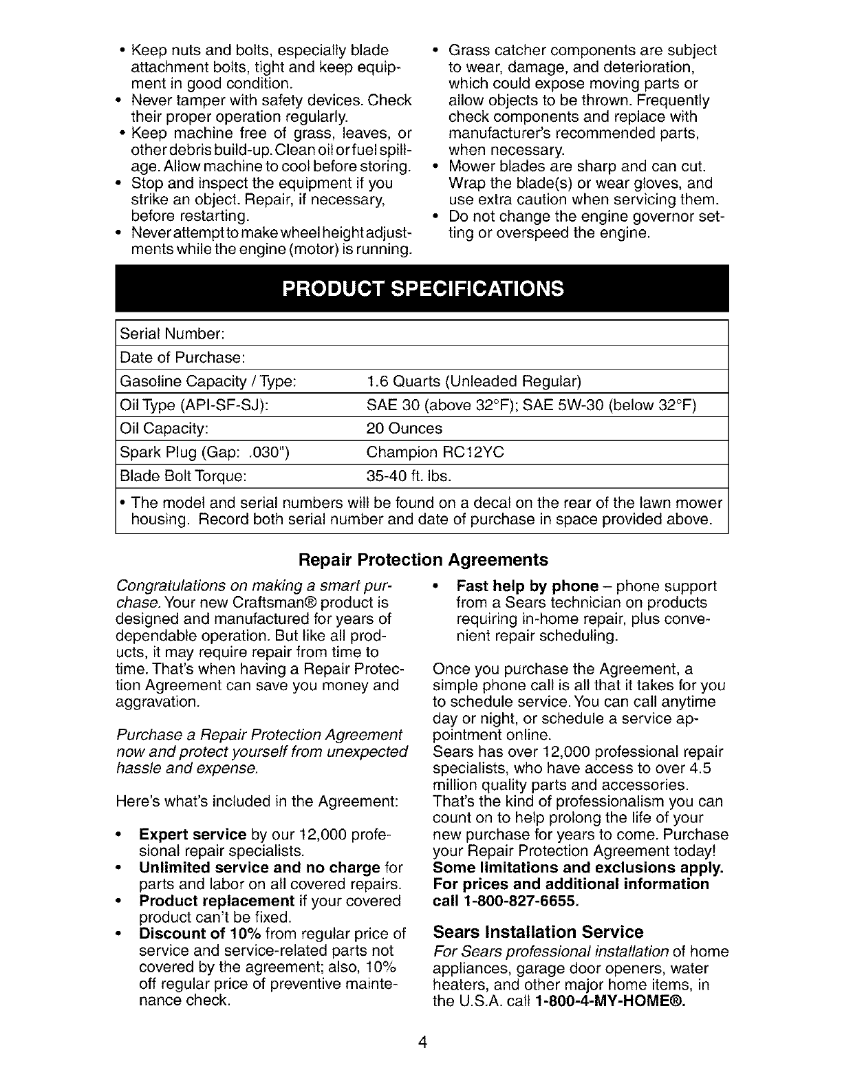 Warranty service is available by returning the Craftsman power mower to the nearest Sears