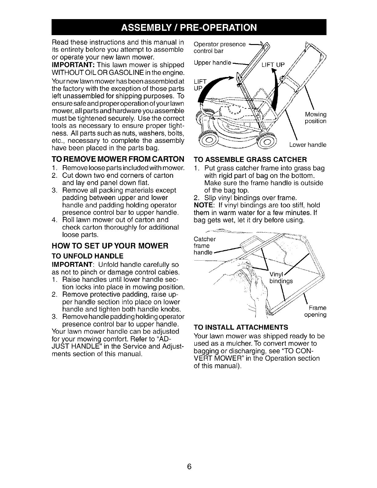 Assembly /Pre-Operation ........................ 6