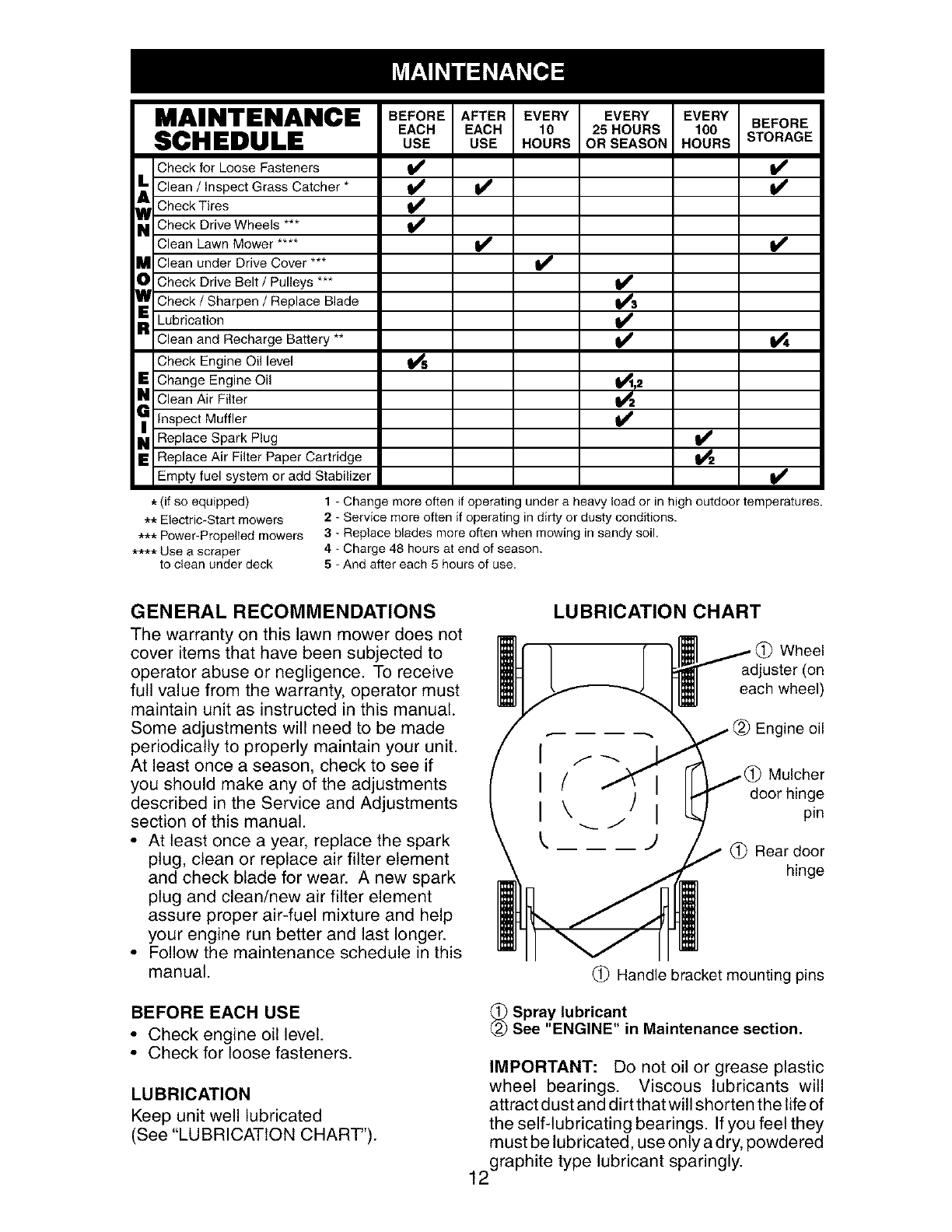 • Expendable items which become worn during normal use, such as rotary mower