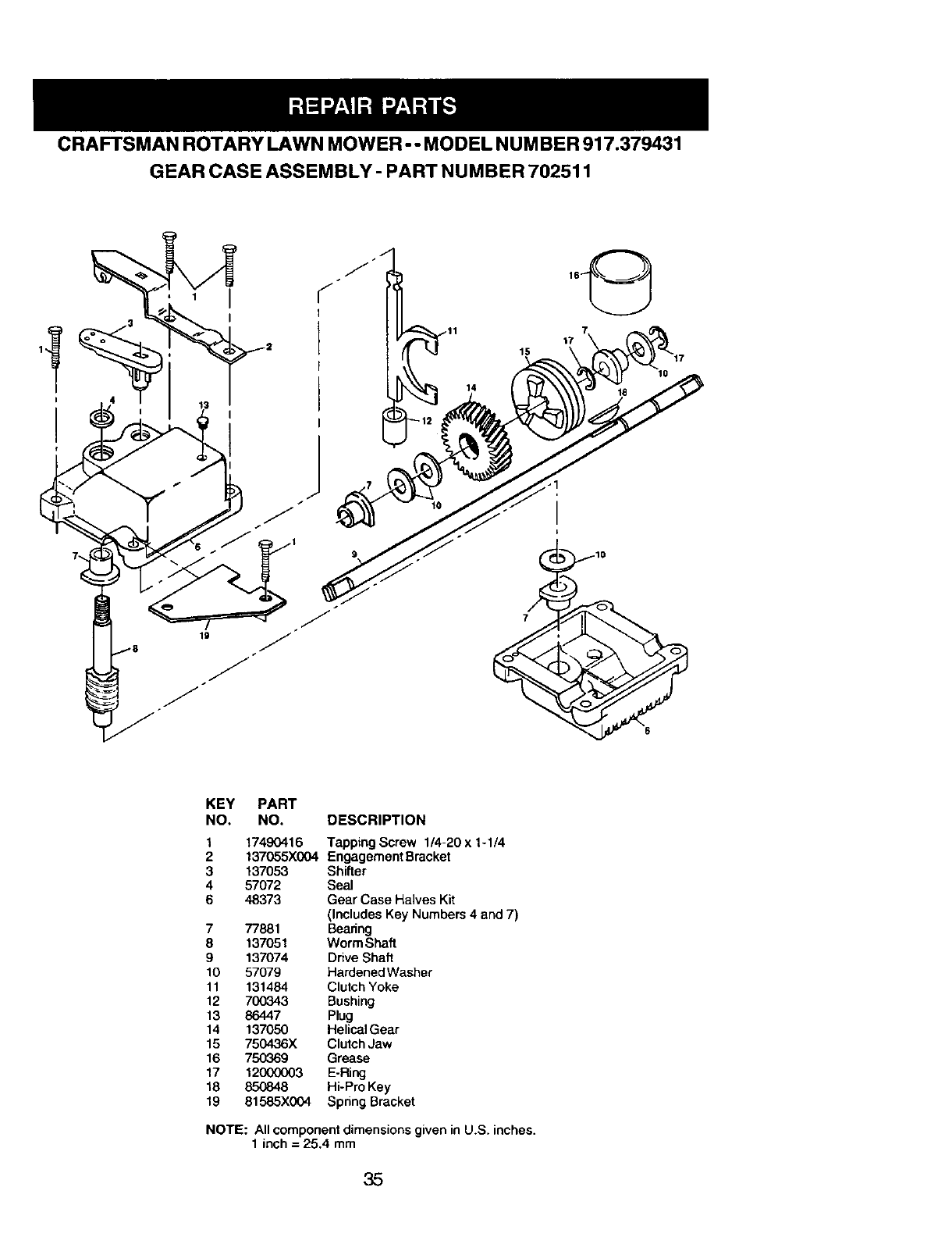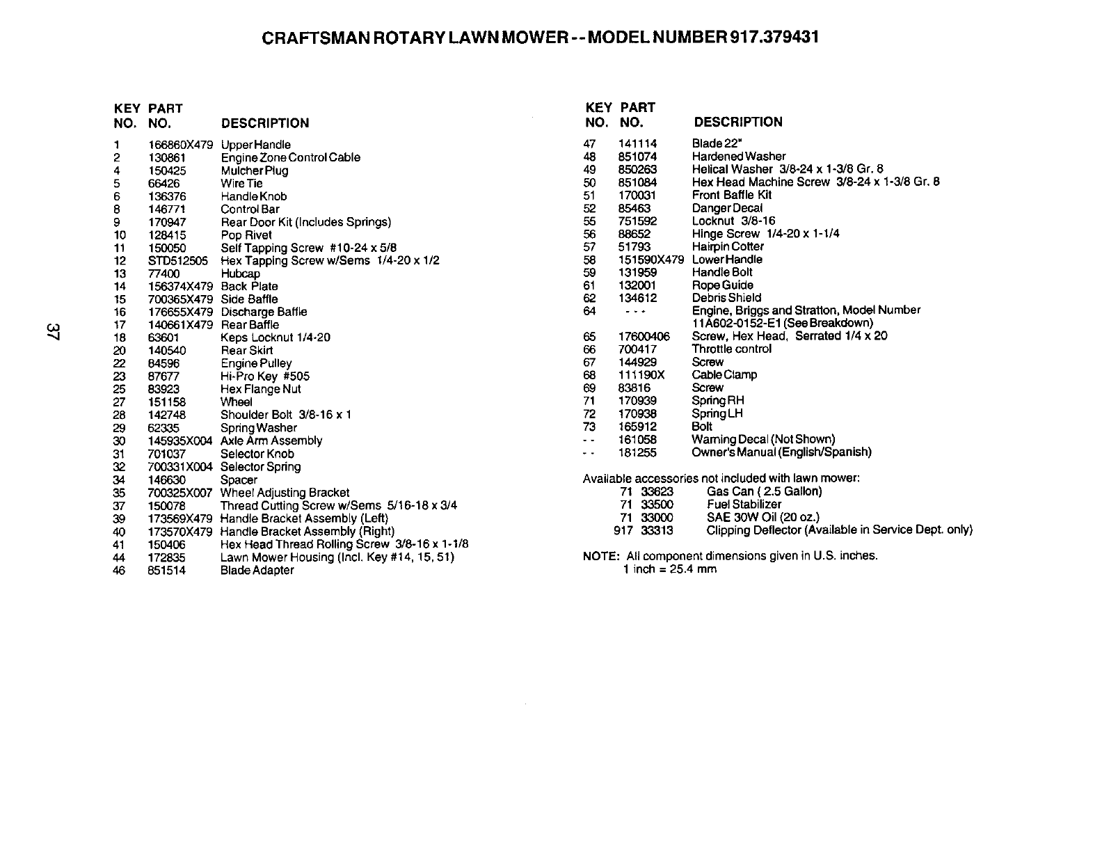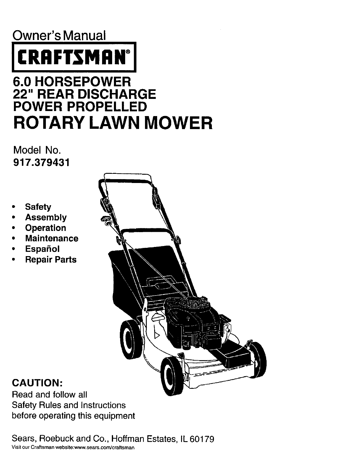 User Manual: Craftsman 917379431 917379431 CRAFTSMAN LAWN MOWER - Manuals and Guides View the owners manual for your CRAFTSMAN LAWN MOWER #917379431. Home:Lawn & Garden Parts:Craftsman Parts:Craftsman LAWN MOWER Manual