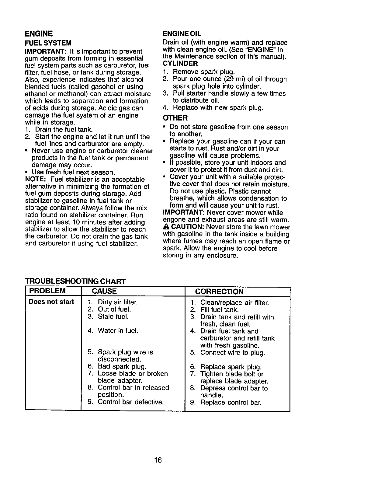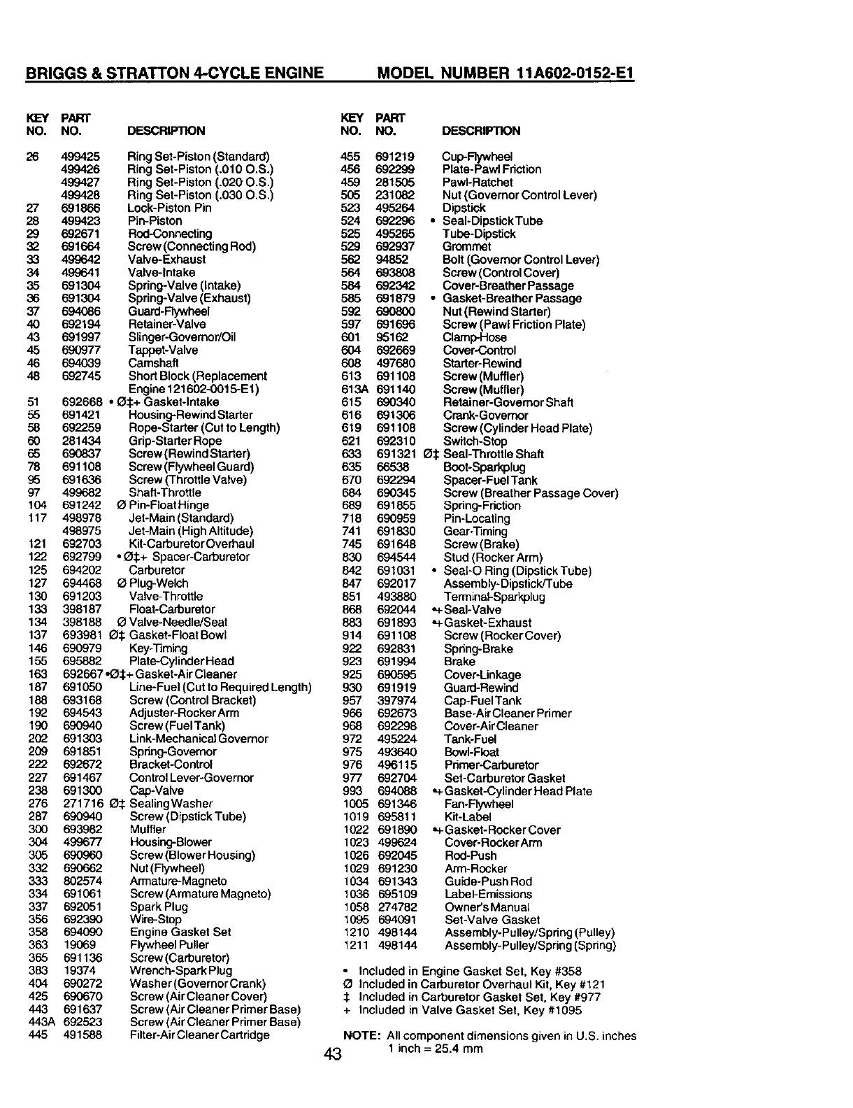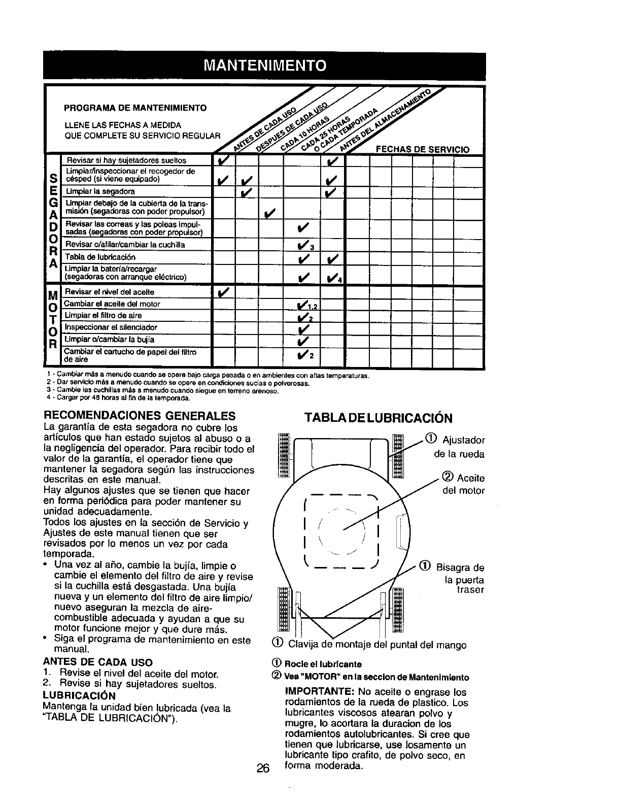 lubricated, and tuned up according to the operating and maintenance instructions in
