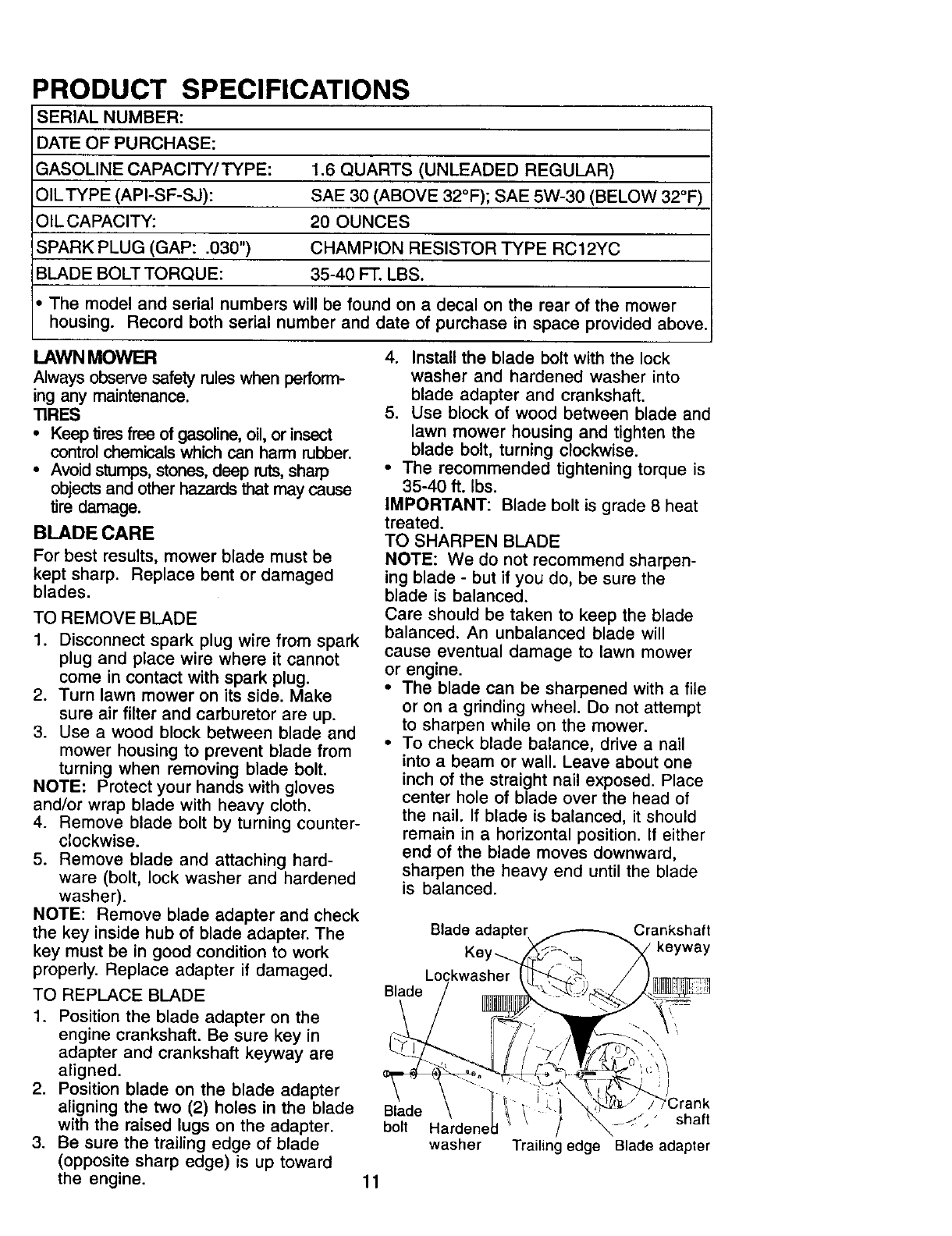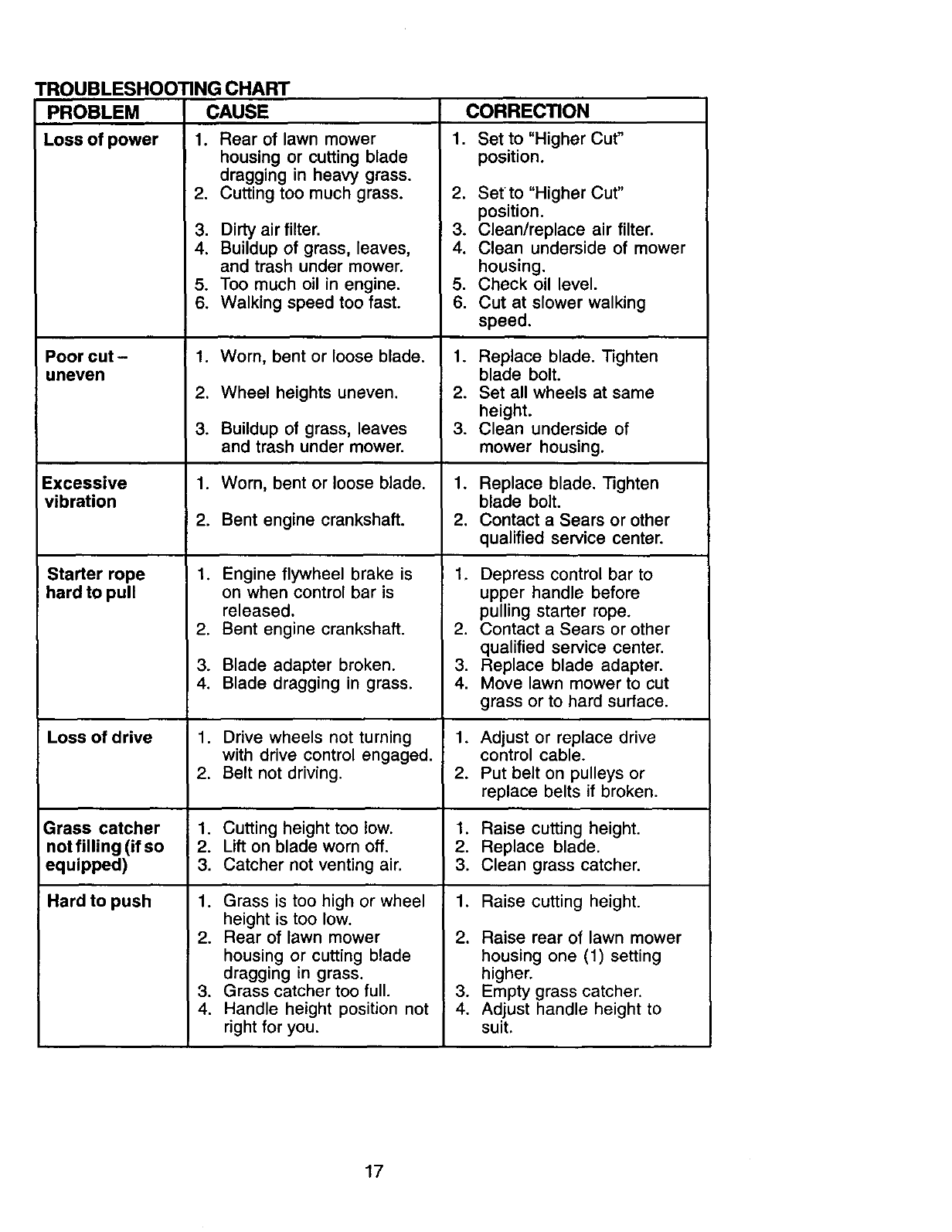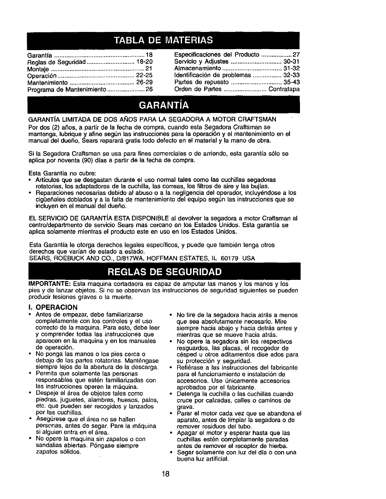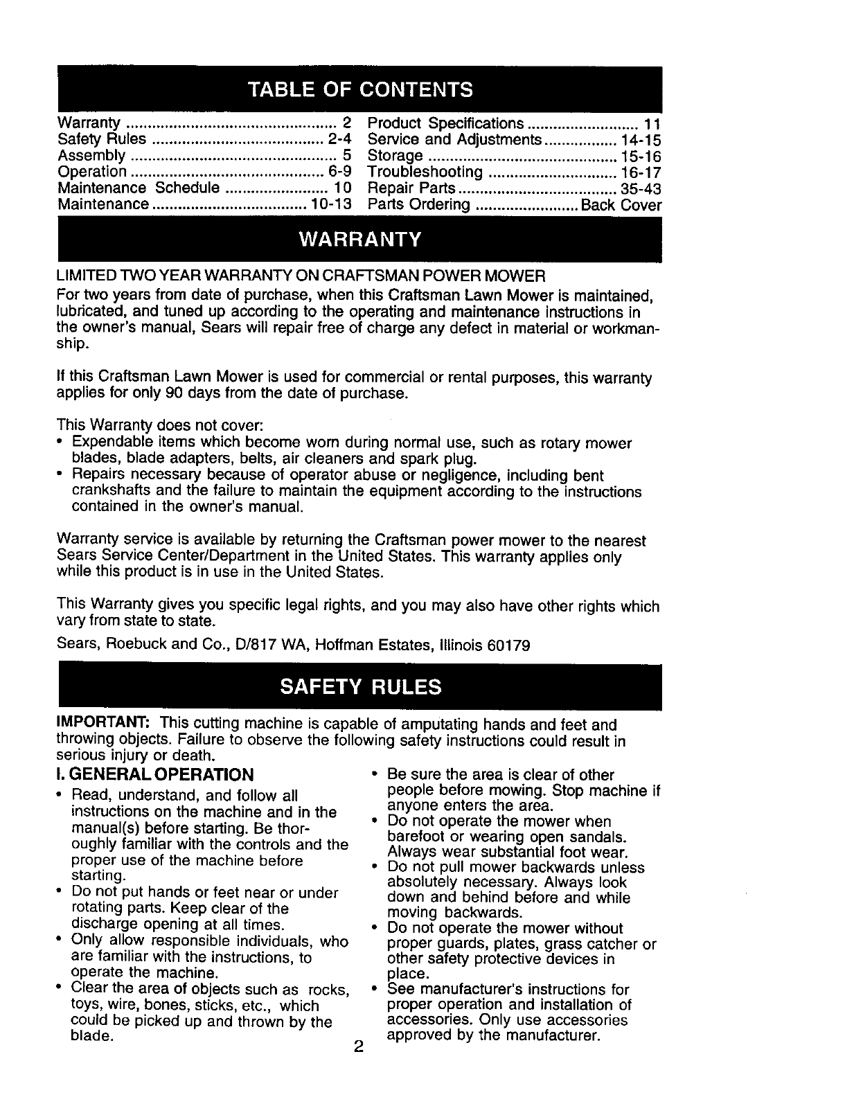 Warranty service is available by returning the Craftsman power mower to the nearest