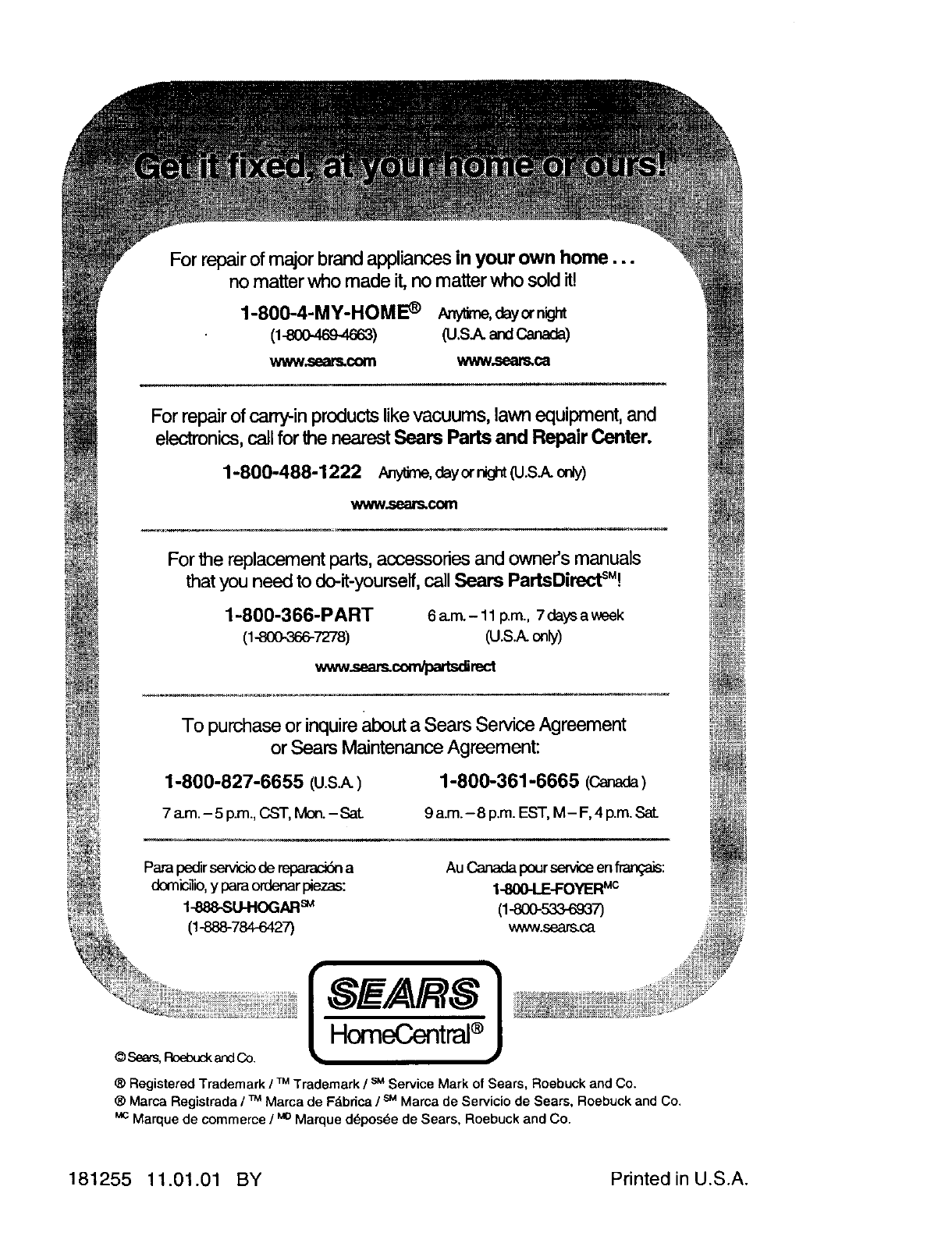 ® Registered Trademark /TMTrademark /SMService Mark of Sears, Roebuck and Co.