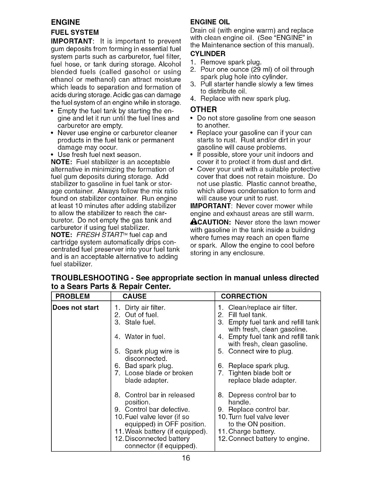 Sears Service .......................... Back Cover