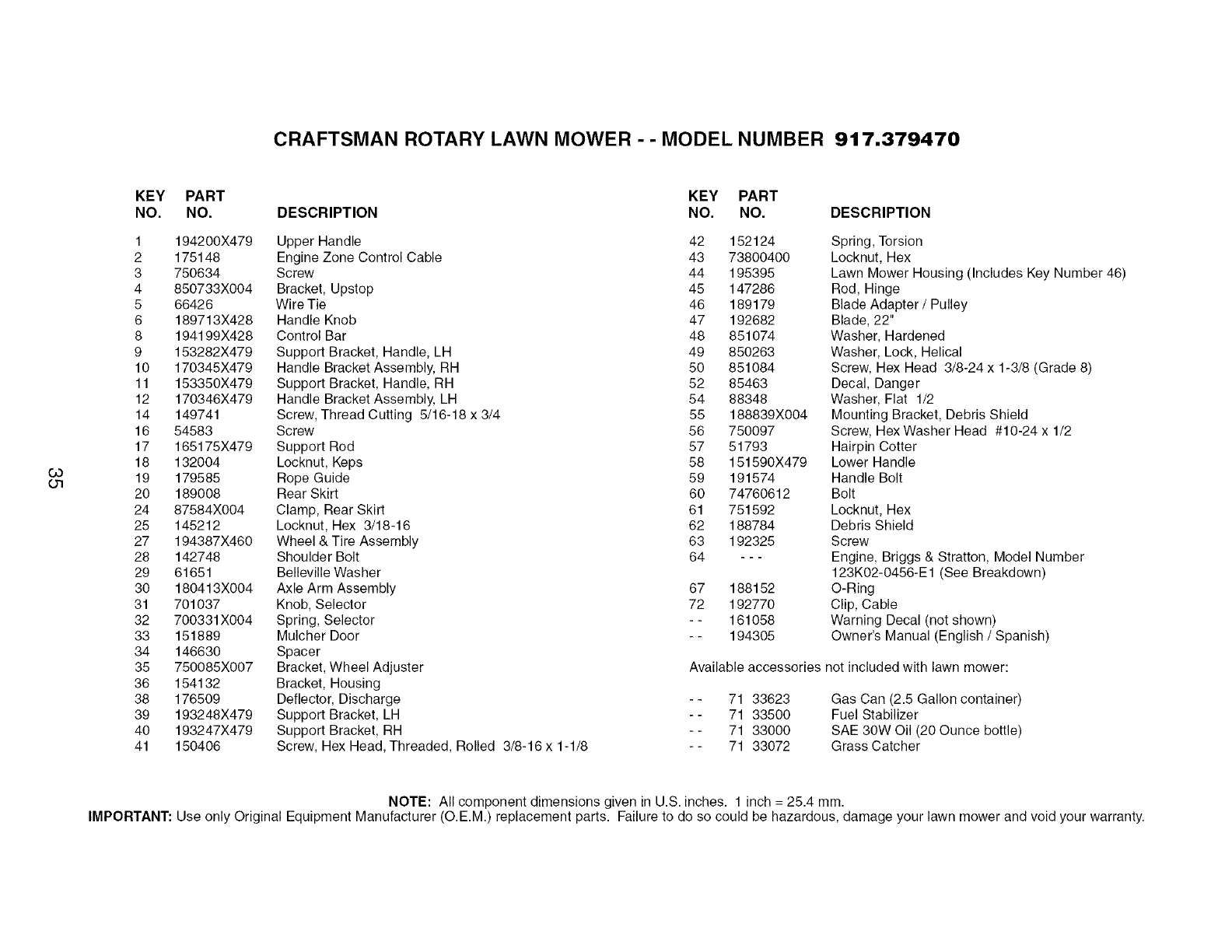 User Manual: Craftsman 917379470 917379470 CRAFTSMAN LAWN MOWER - Manuals and Guides View the owners manual for your CRAFTSMAN LAWN MOWER #917379470. Home:Lawn & Garden Parts:Craftsman Parts:Craftsman LAWN MOWER Manual