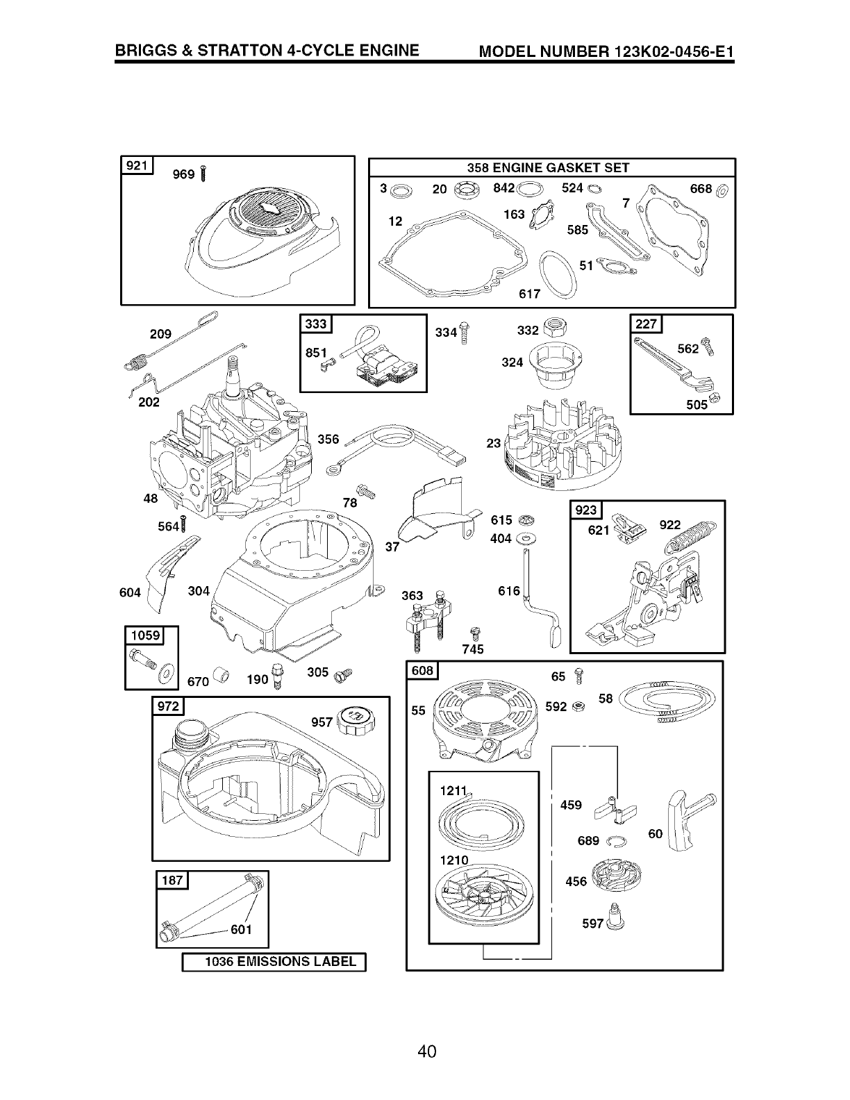 • Included in Engine Gasket Set, Key No. 358