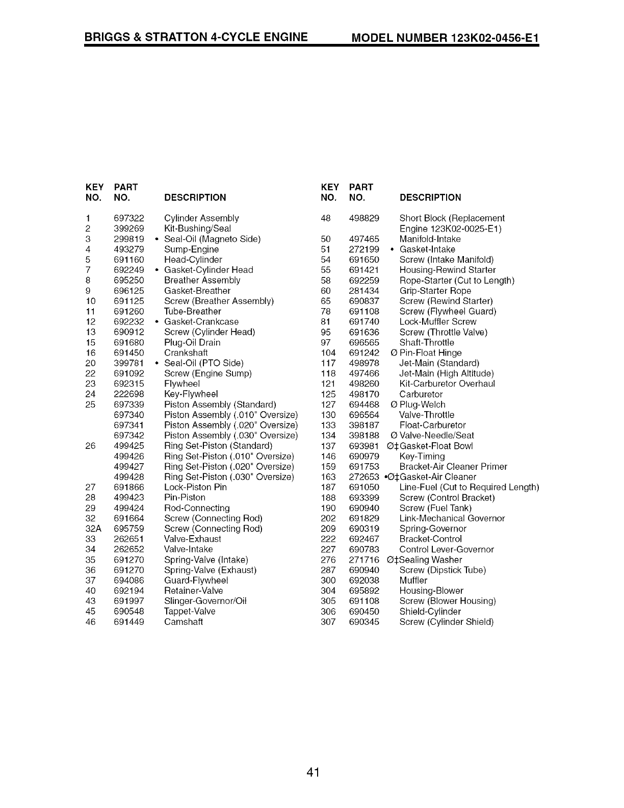 0 Included in Carburetor Overhaul Kit, Key No. 121