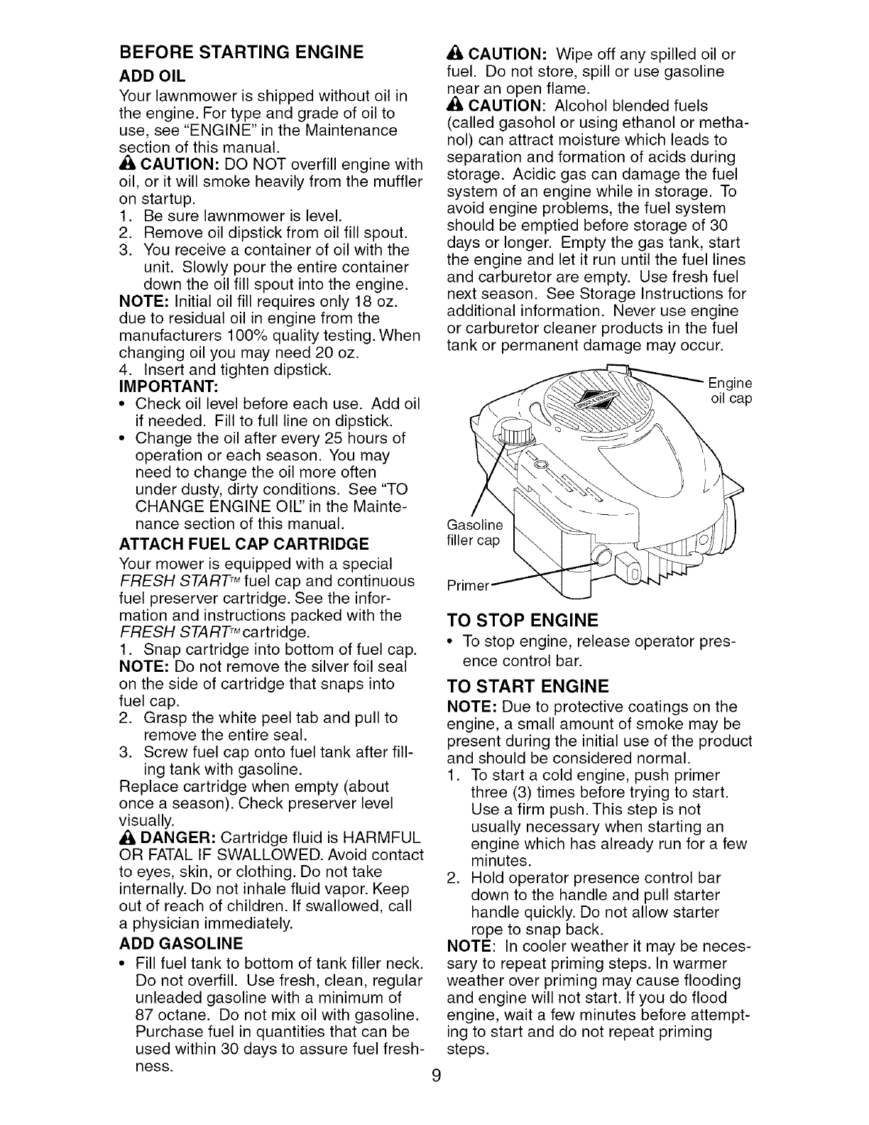 A CAUTION: Muffler and other engine