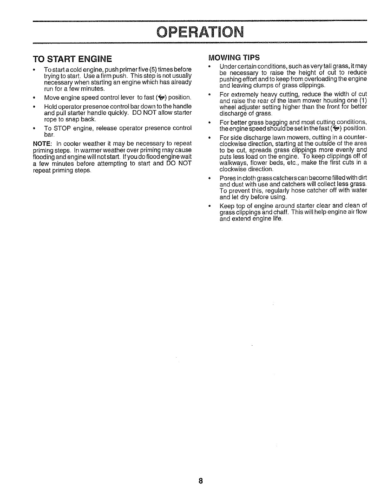 • Mow only in daylight or good artificial light.