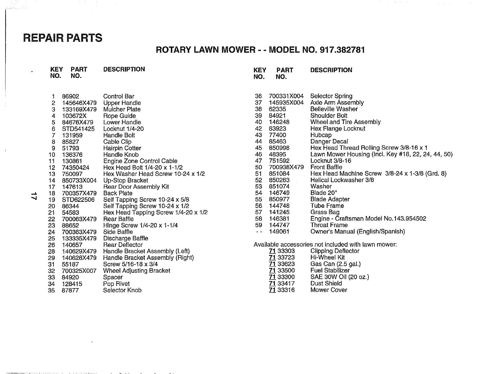 User Manual: Craftsman 917382781 917382781 CRAFTSMAN LAWN MOWER - Manuals and Guides View the owners manual for your CRAFTSMAN LAWN MOWER #917382781. Home:Lawn & Garden Parts:Craftsman Parts:Craftsman LAWN MOWER Manual