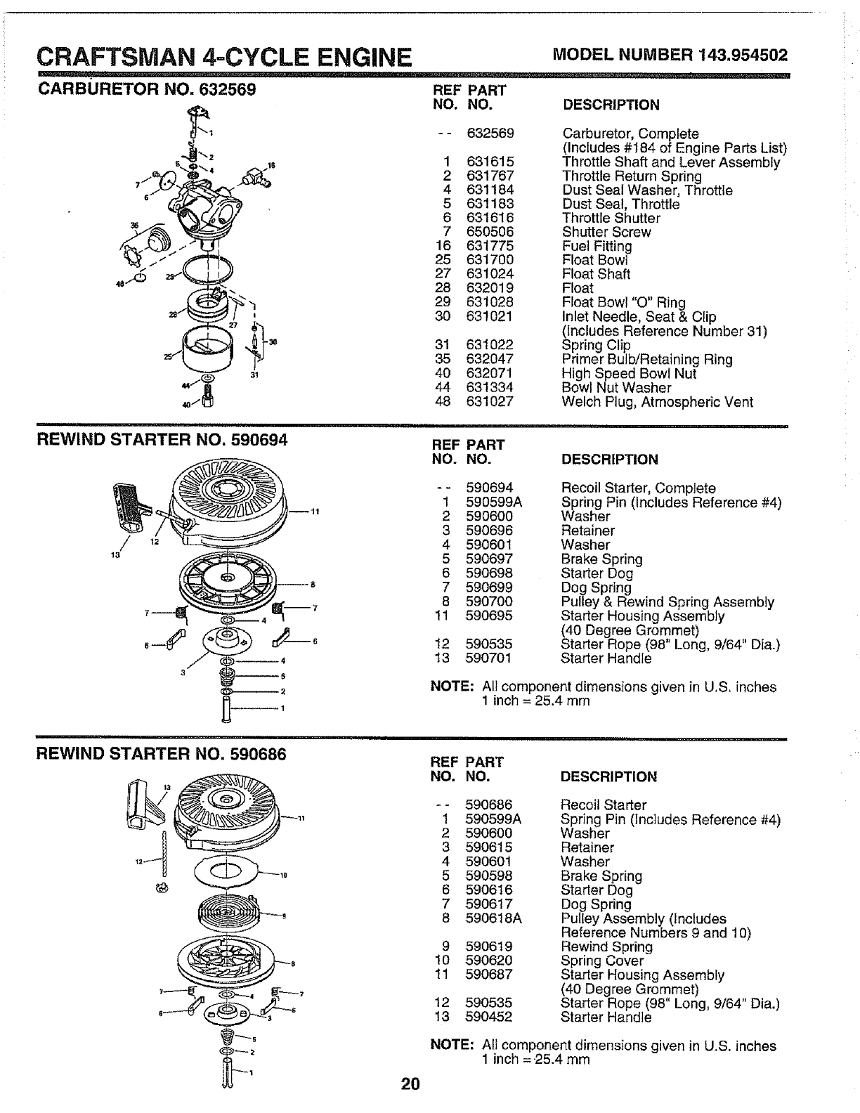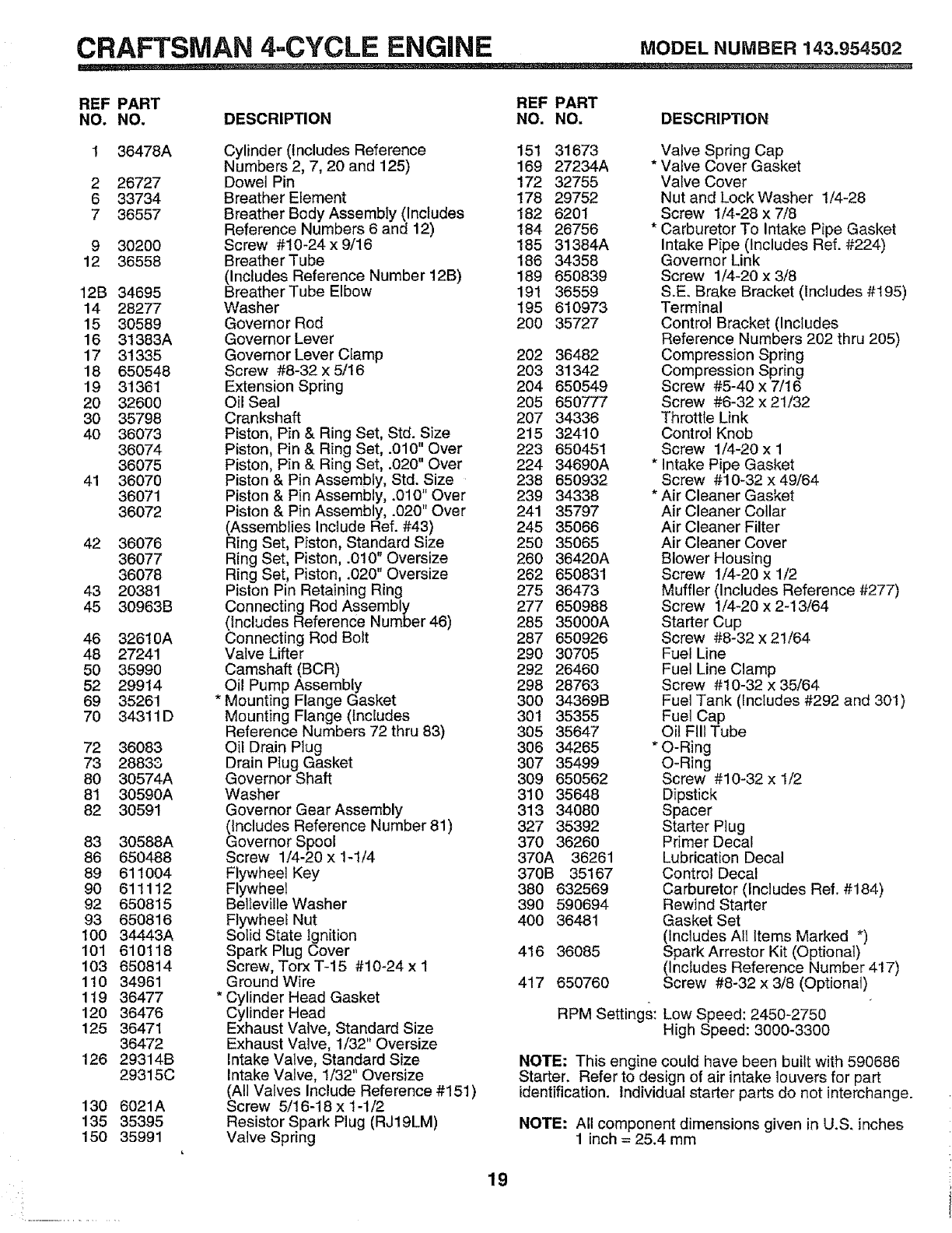 -ENGINE -CRAFTSMAN -MODEL NO. 143.954502