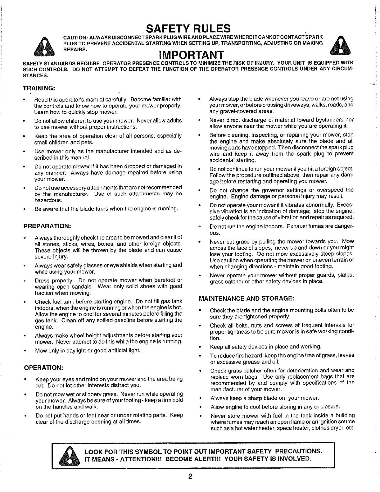 SAFETYSTANDARDS REQUIRE OPERATOR PRESENCECONTROLSTO MINIMIZETHERISKOFINJURY. YOUR UNIT ISEQUIPPED WITH