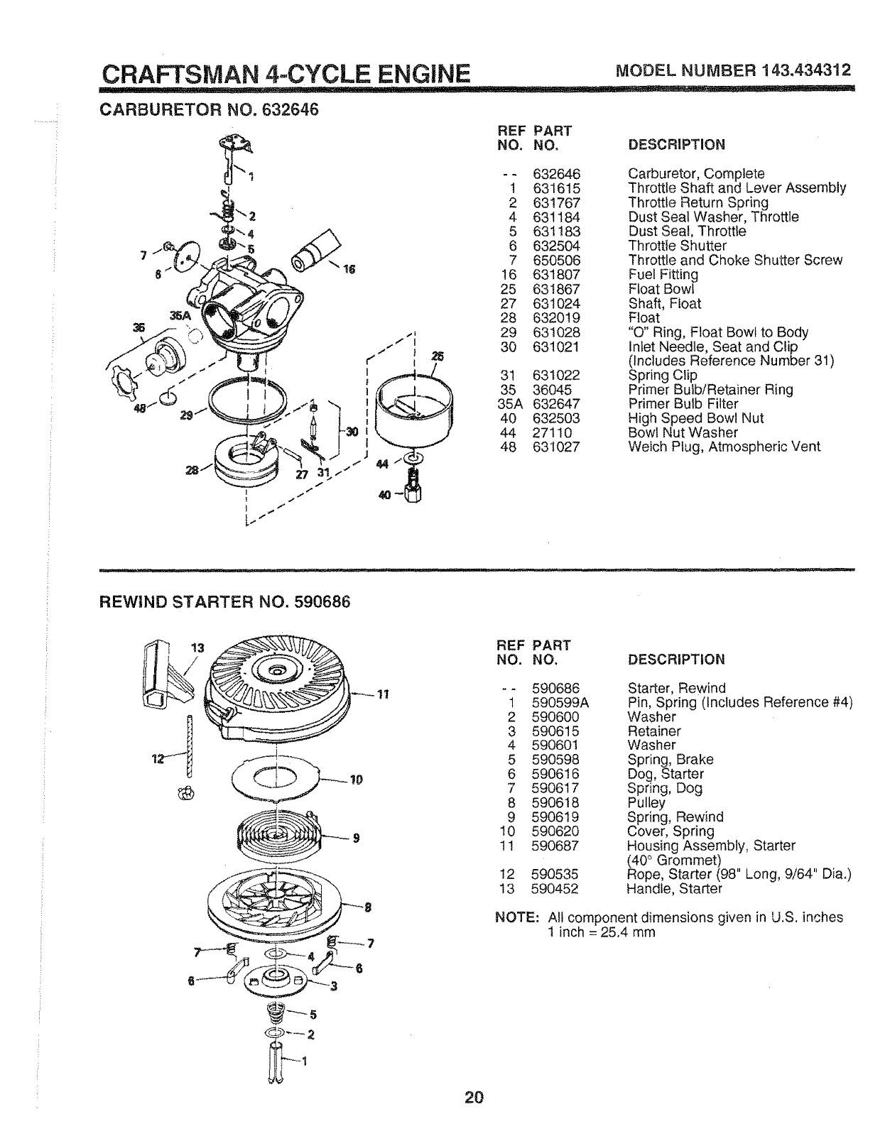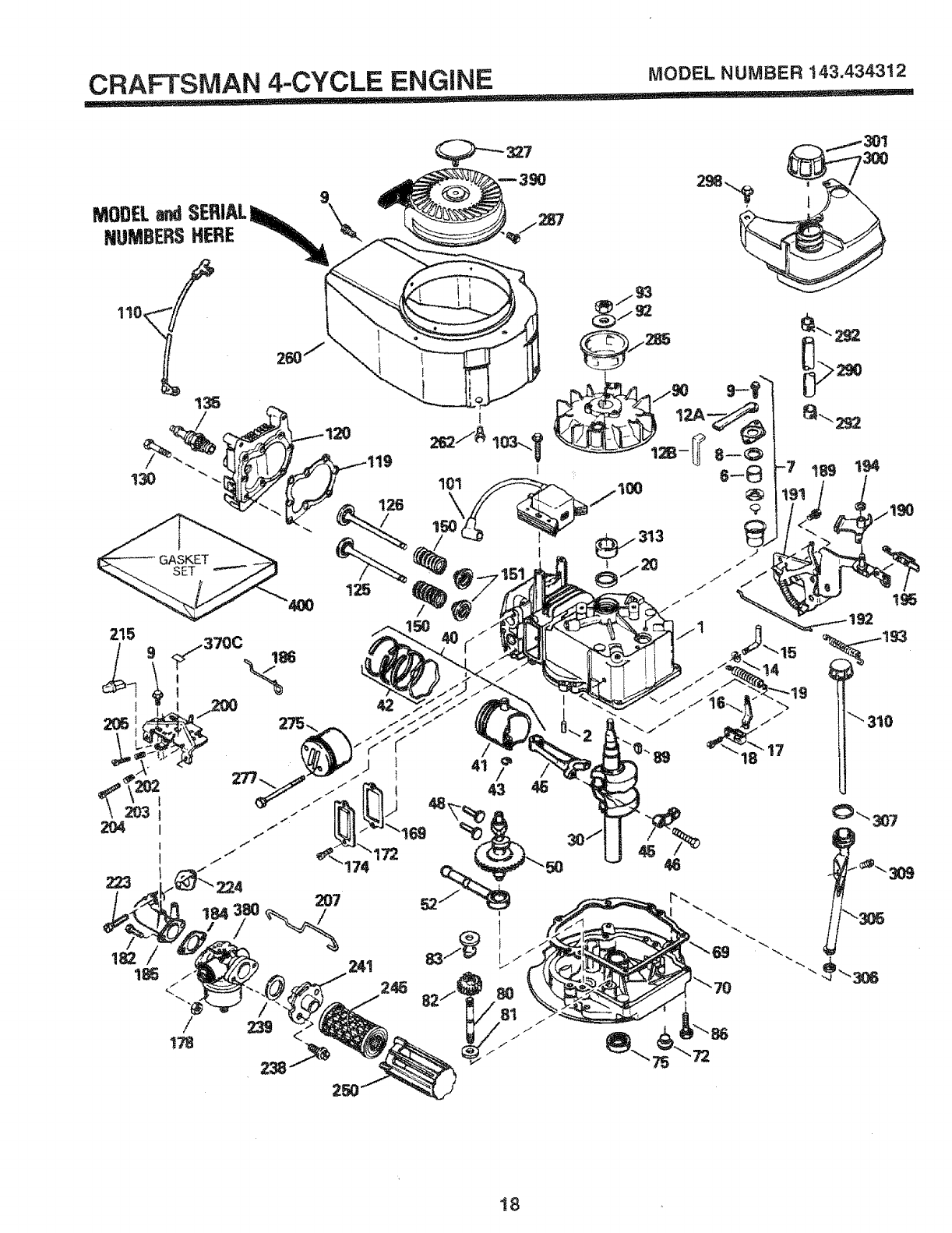 ° ENGINE - CRAFTSMAN MODEL NO. 143,434312