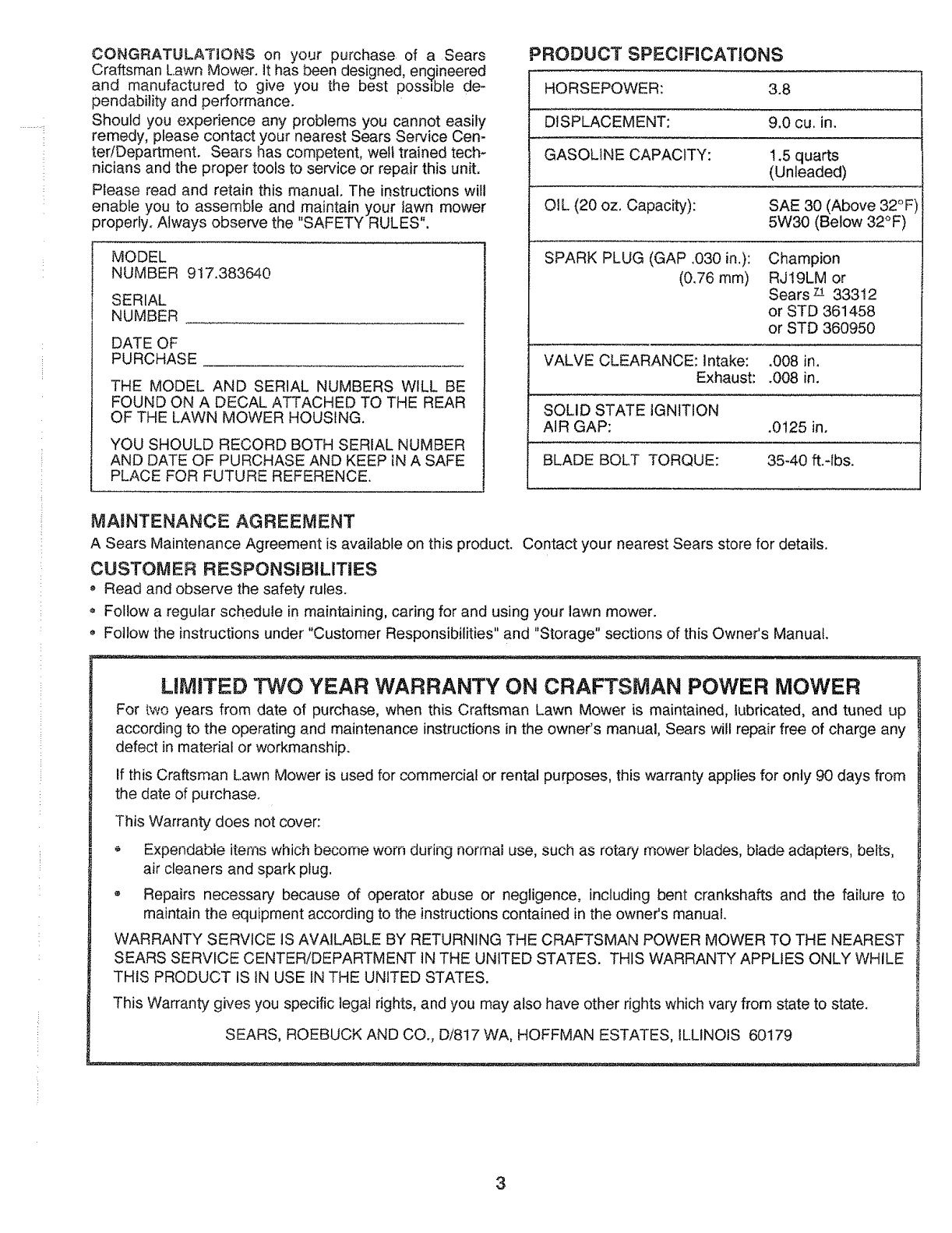 Craftsman 917383640 User Manual LAWN MOWER Manuals And Guides L0903678