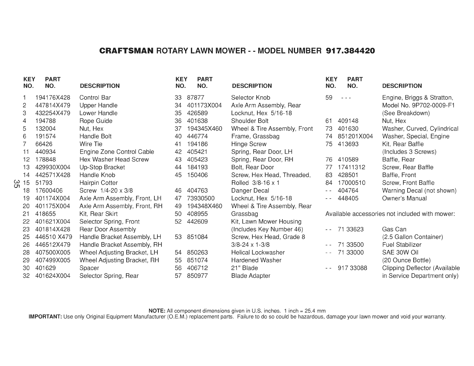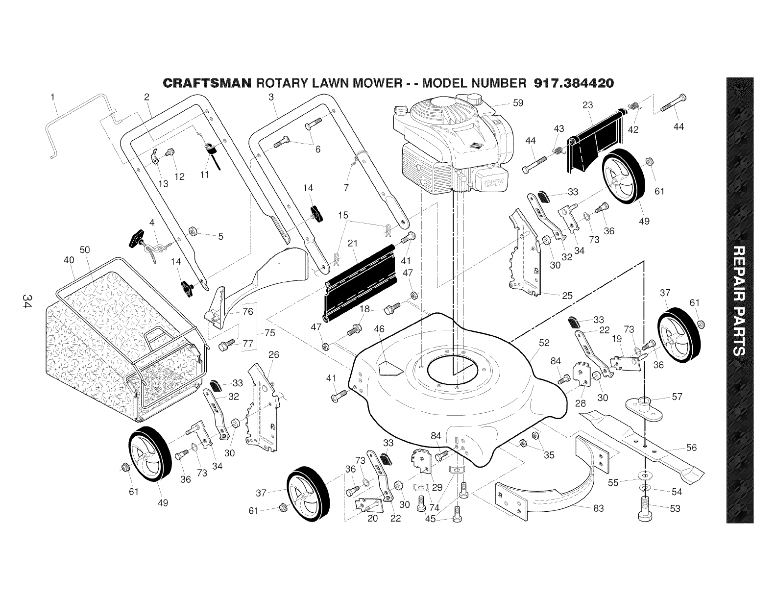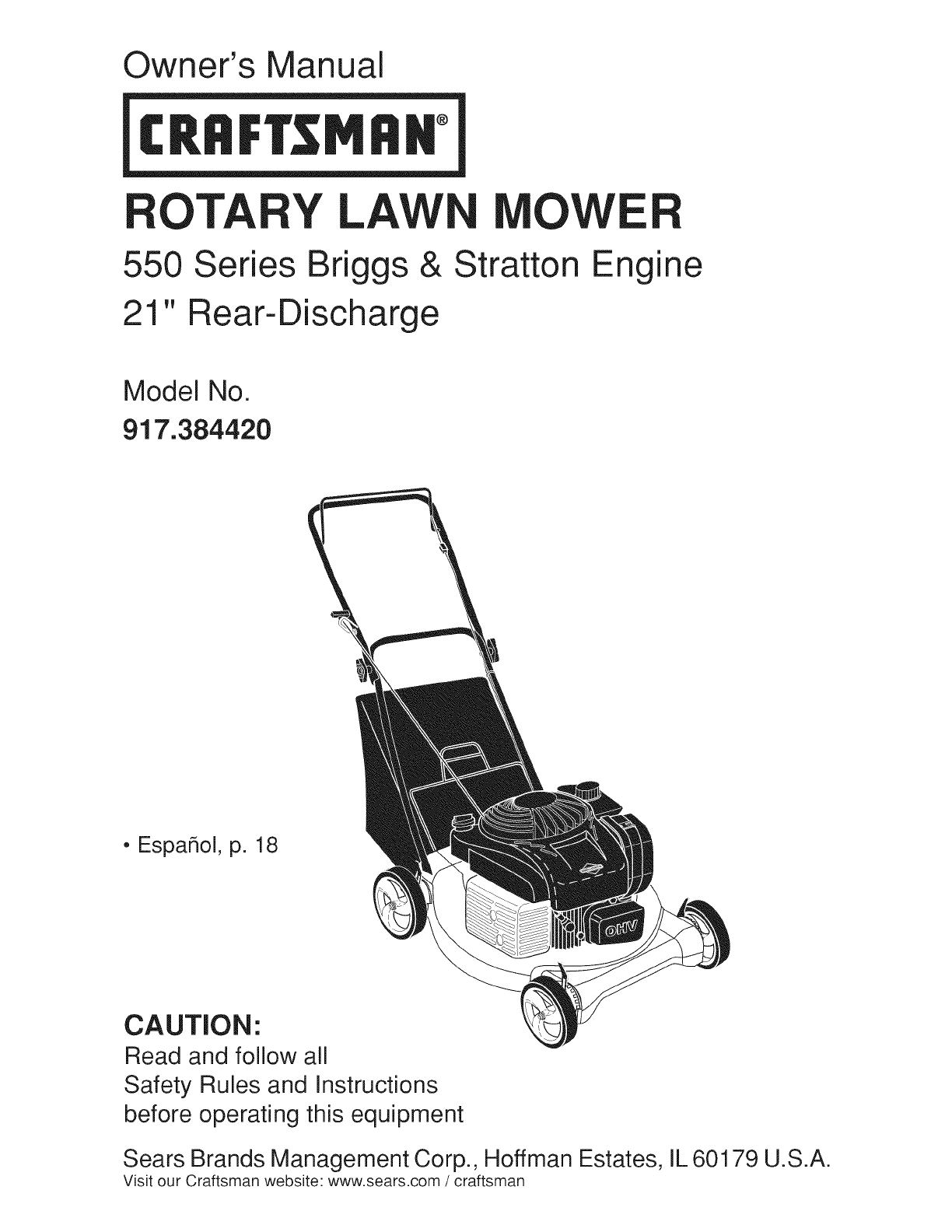 User Manual: Craftsman 917384420 917384420 CRAFTSMAN MOWER - Manuals and Guides View the owners manual for your CRAFTSMAN MOWER #917384420. Home:Lawn & Garden Parts:Craftsman Parts:Craftsman MOWER Manual