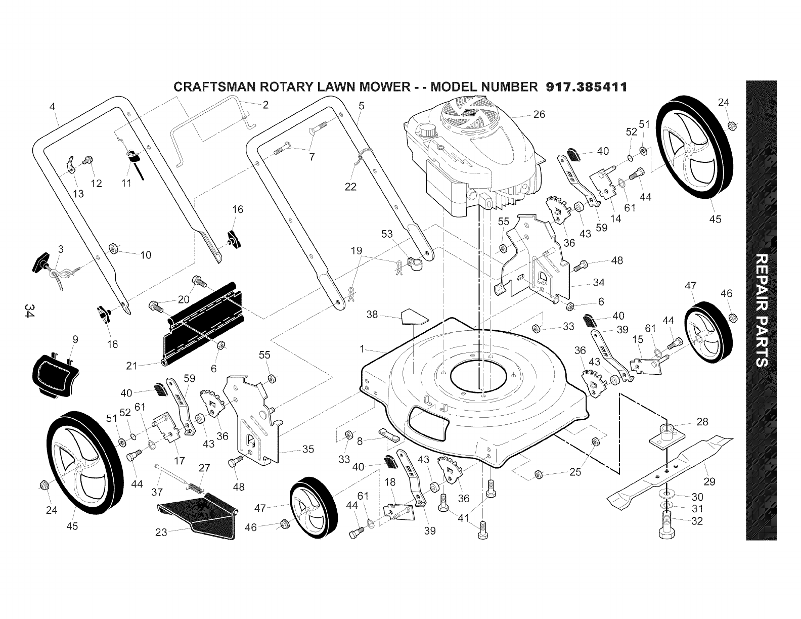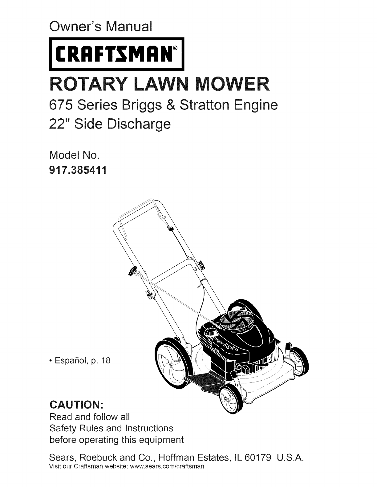 User Manual: Craftsman 917385411 917385411 CRAFTSMAN LAWN MOWER - Manuals and Guides View the owners manual for your CRAFTSMAN LAWN MOWER #917385411. Home:Lawn & Garden Parts:Craftsman Parts:Craftsman LAWN MOWER Manual