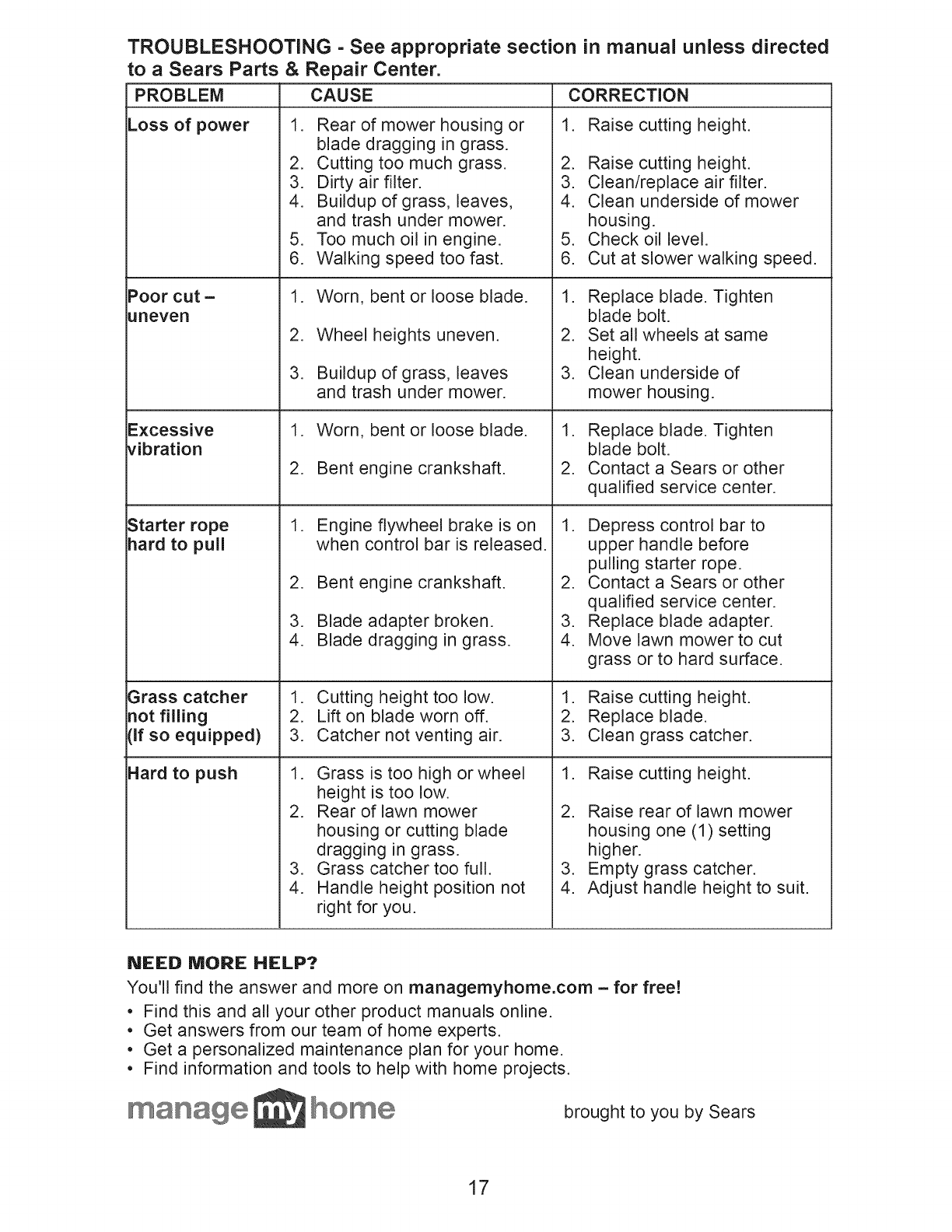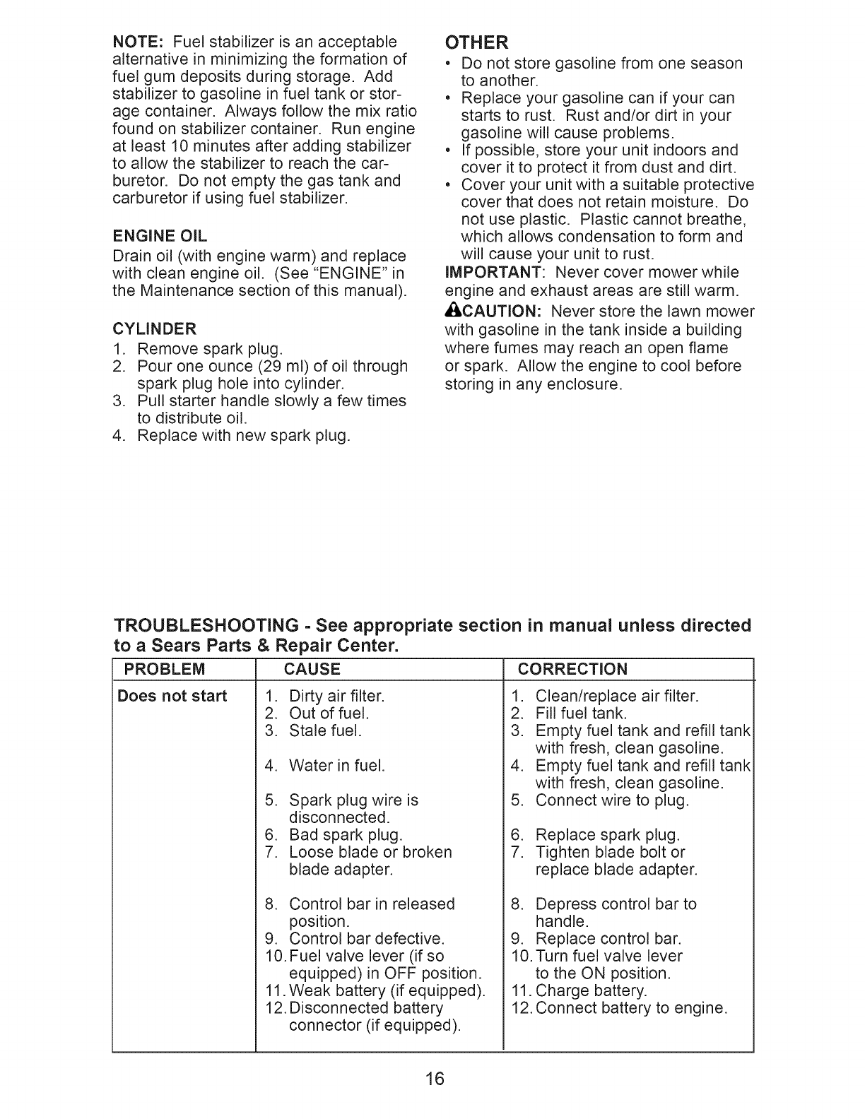 Sears Service .......................... Back Cover