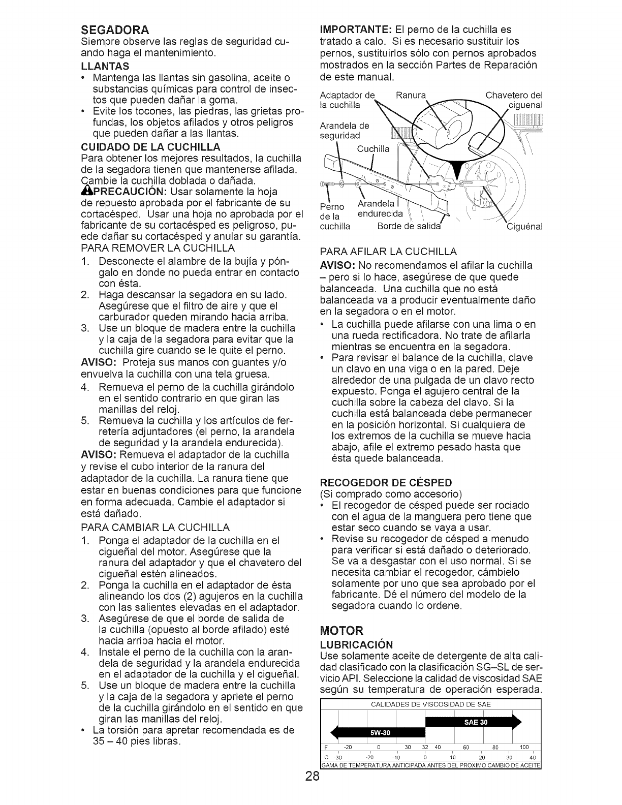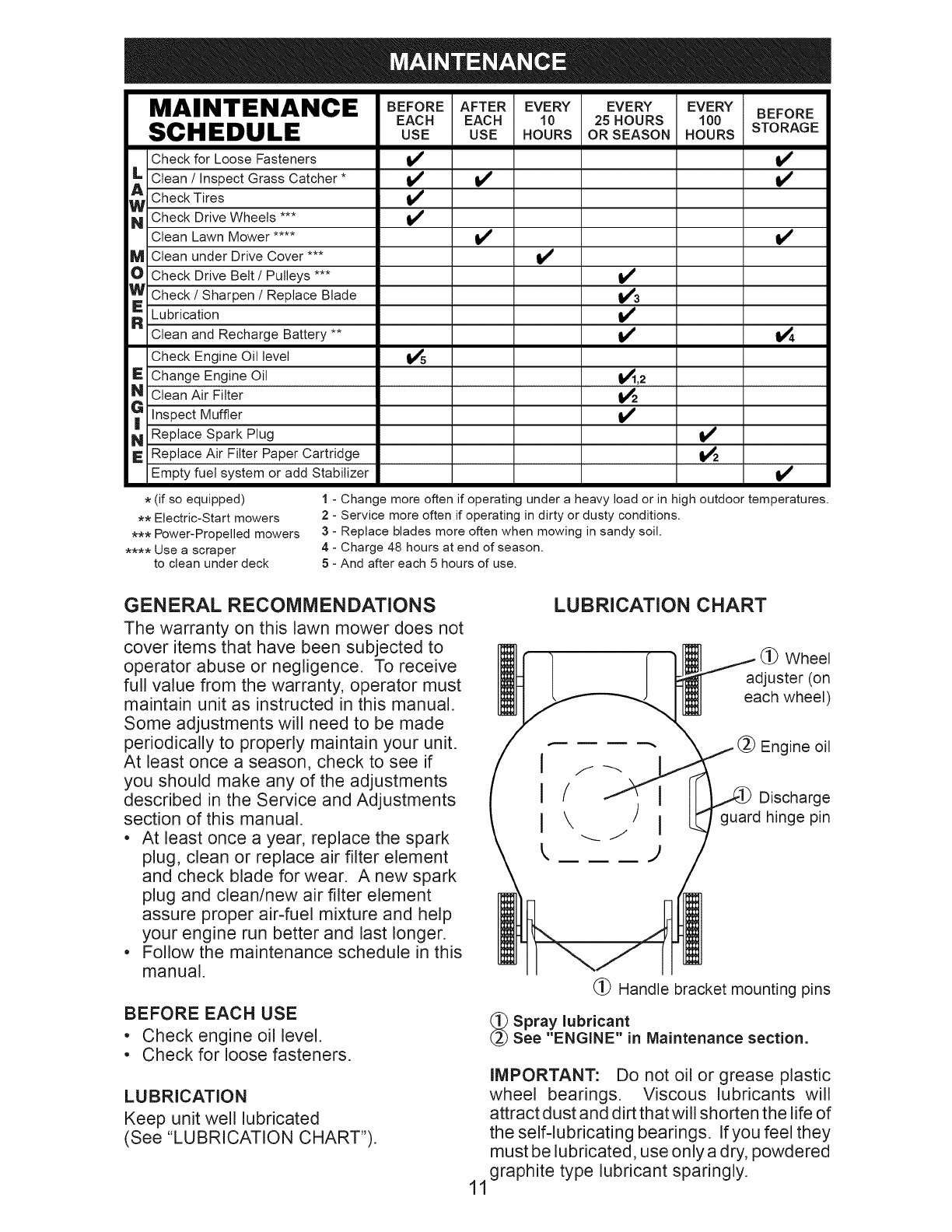 blades, blade adapters, belts, air cleaners and spark plug.