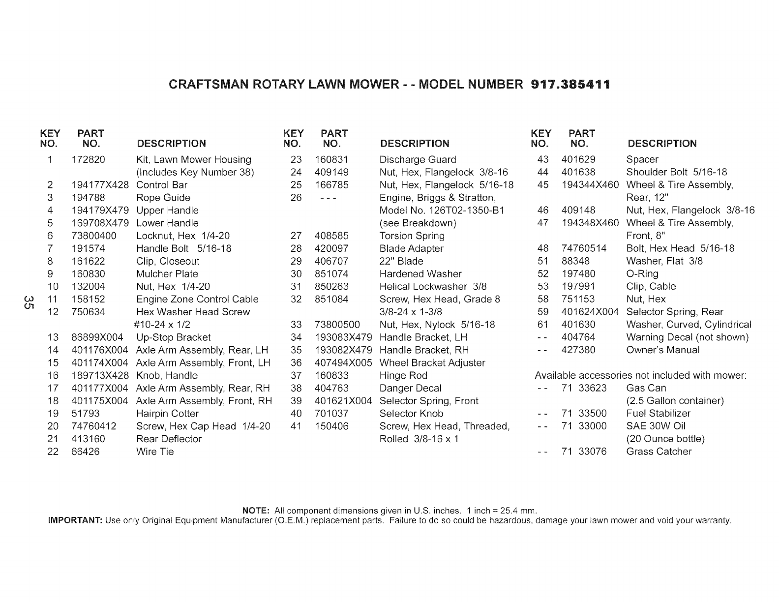 Craftsman 917385411 User Manual LAWN MOWER Manuals And Guides L0906202