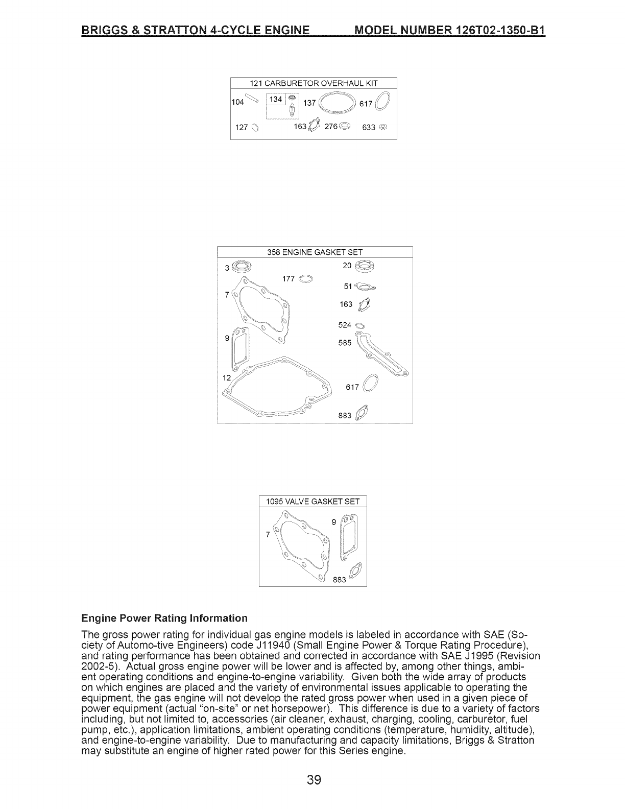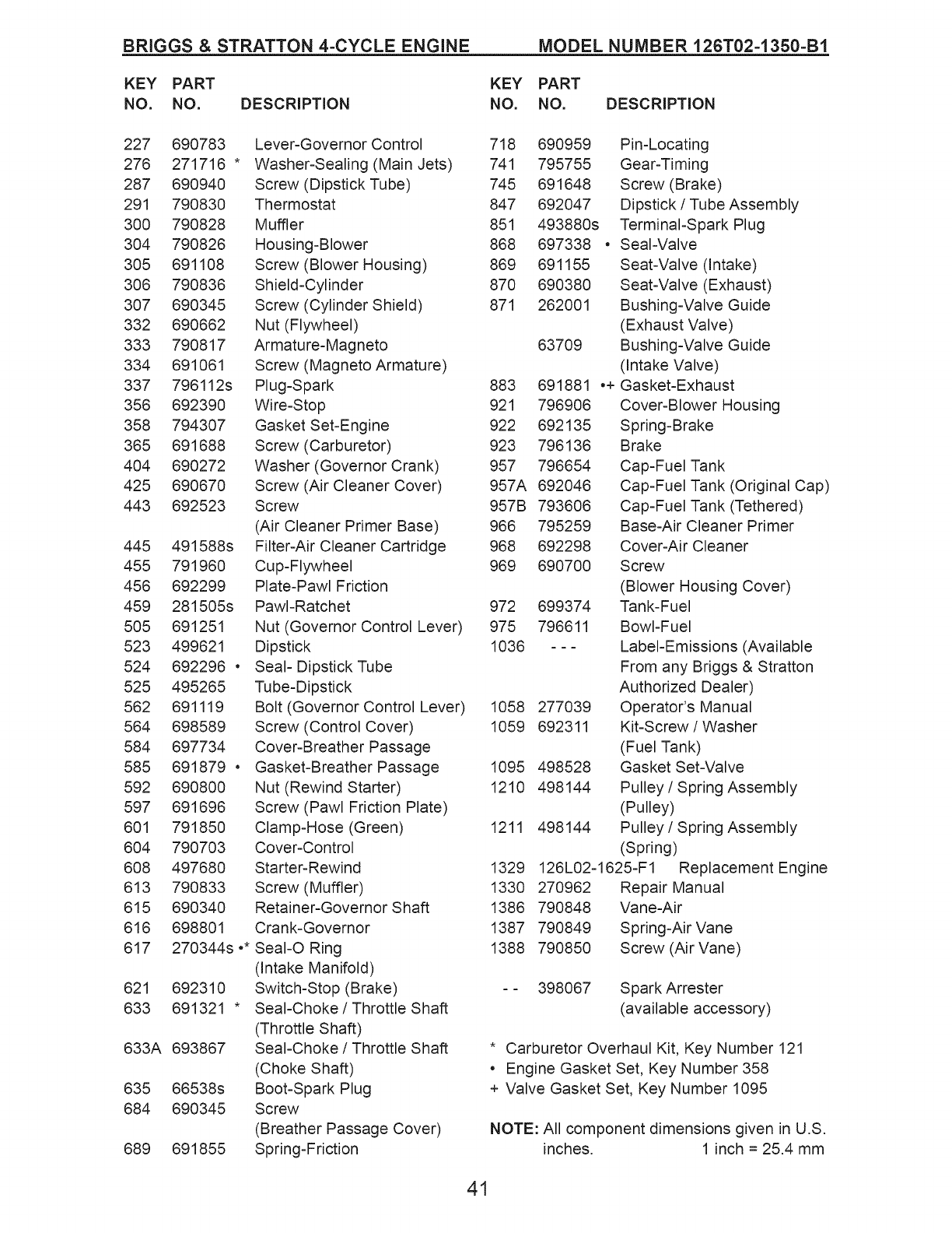 * Carburetor Overhaul Kit, Key Number 121