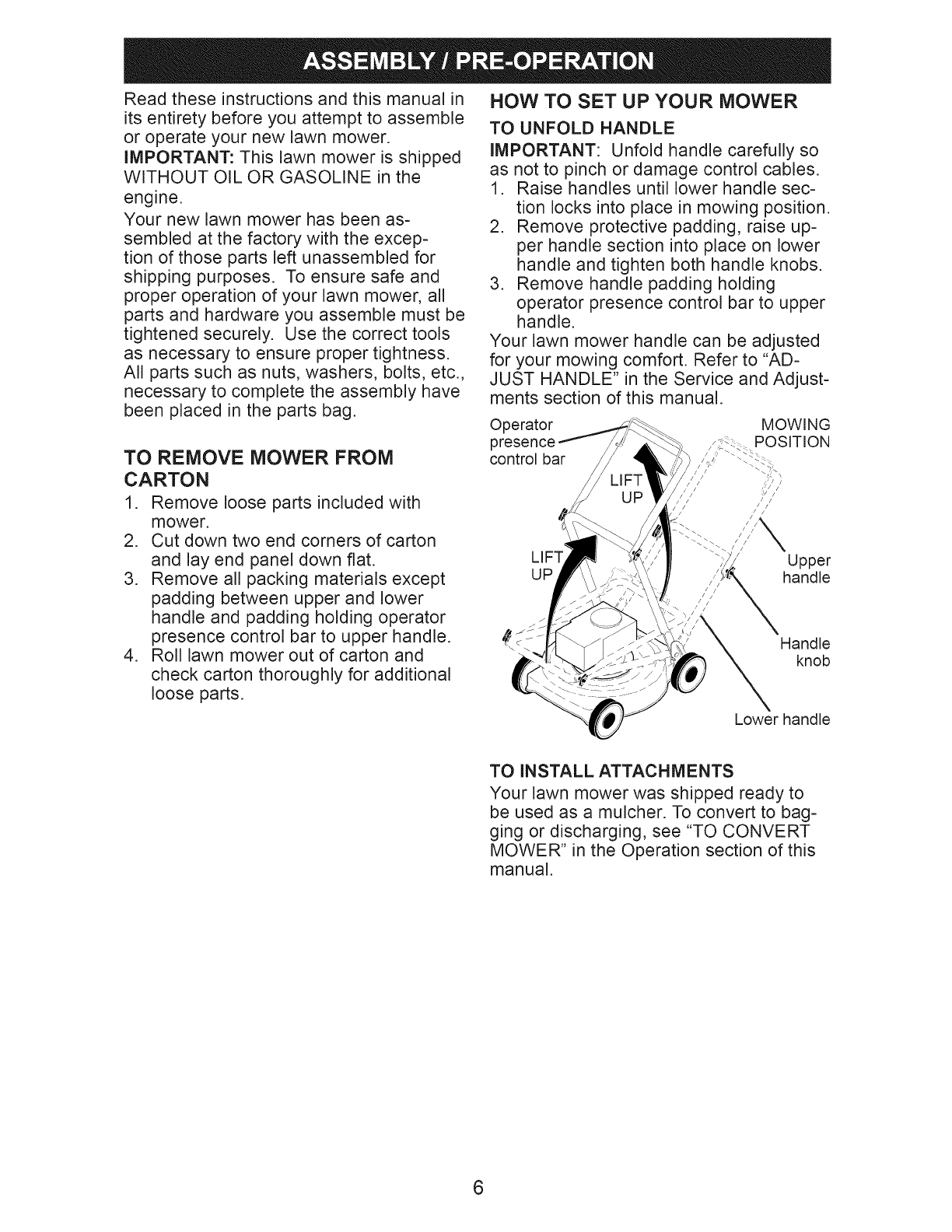 Assembly /Pre-Operation ........................ 6