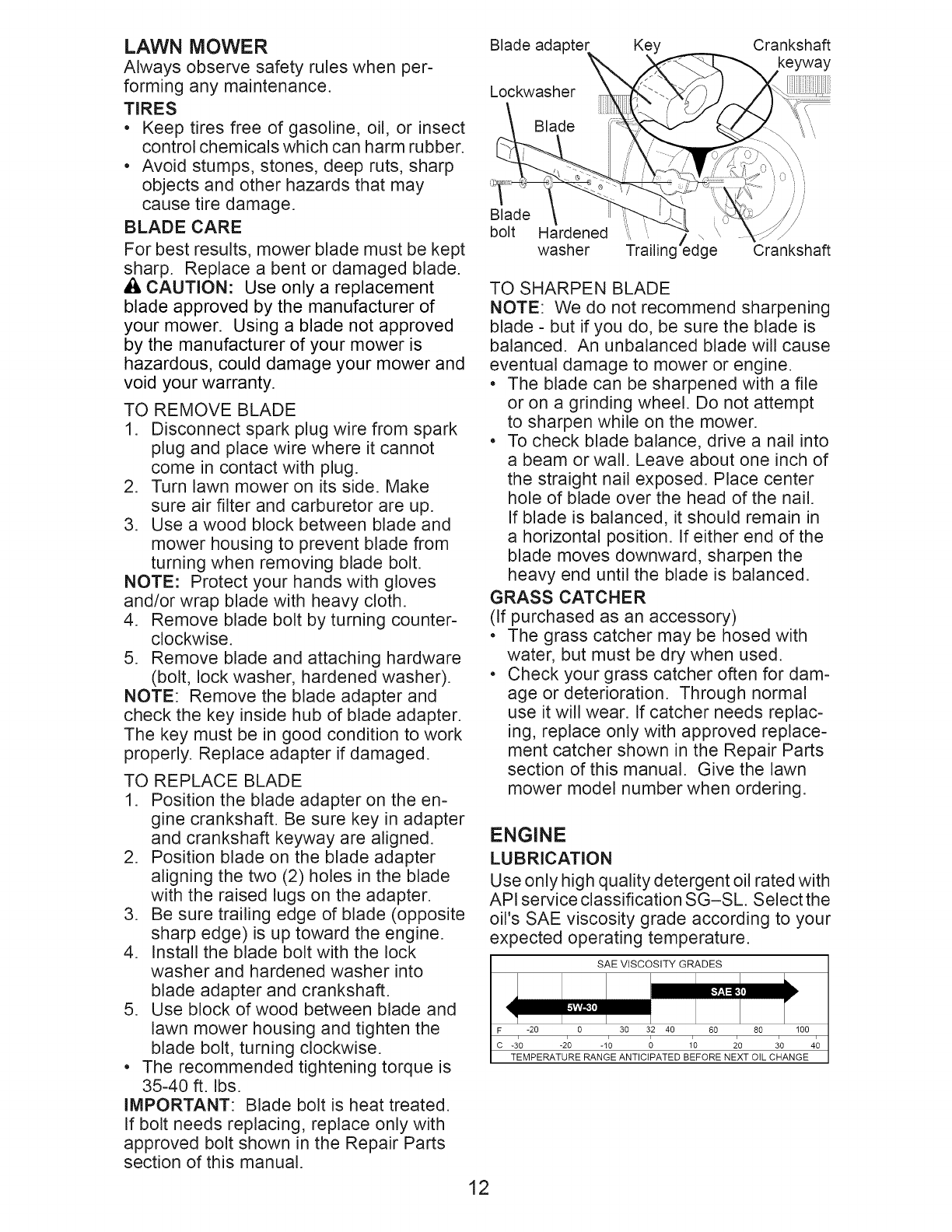 crackshafts and the failure to assemble, operate or maintain this Lawn Mower