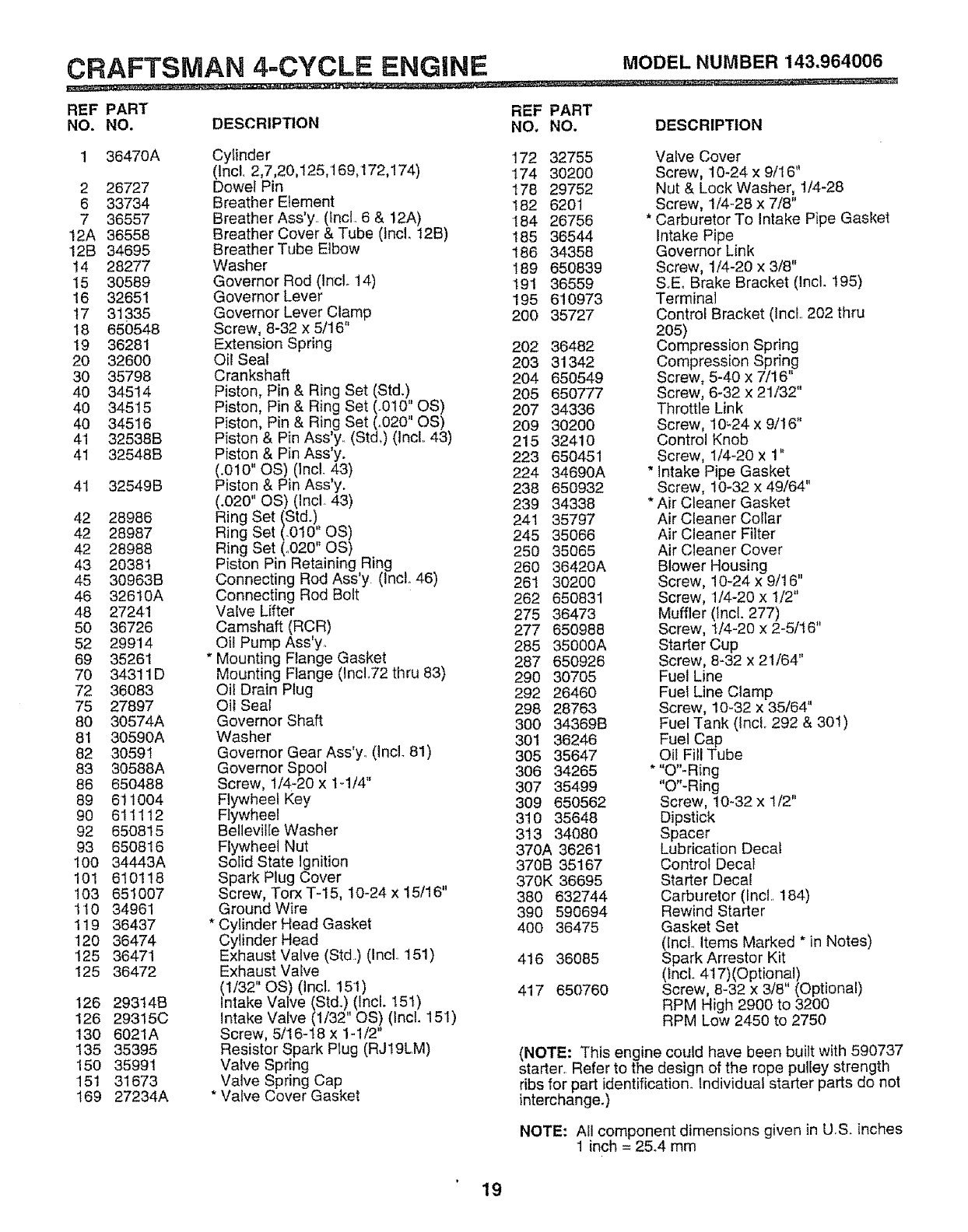 °ENGINE CRAFTSMAN - MODEL NO. 143.964006