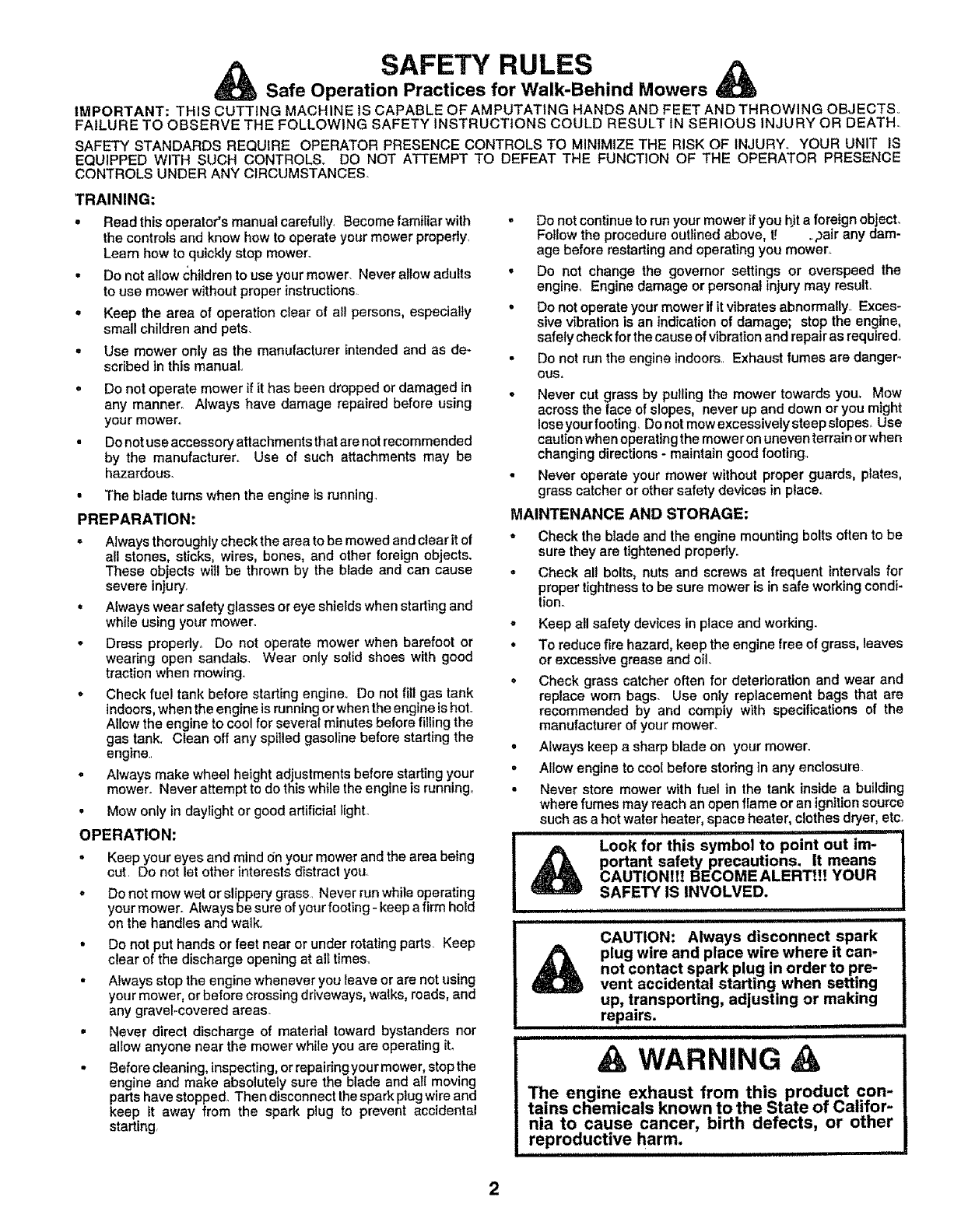 SAFETY STANDARDS REQUIRE OPERATOR PRESENCE CONTROLS TO MINIMIZE THE RISK OF INJURY_ YOUR UNIT iS
