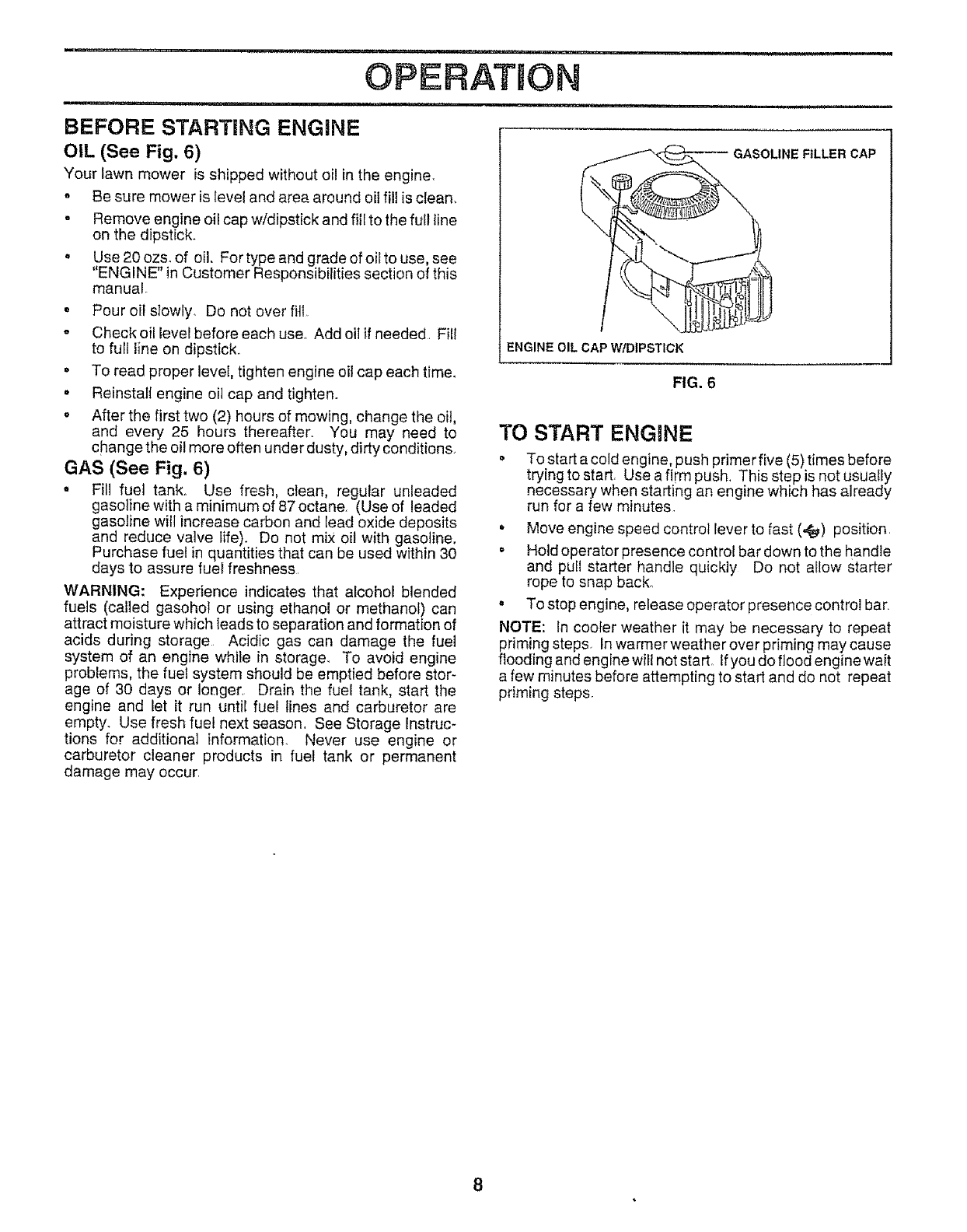 ° Check fuel tank before starting engine_ Do not fill gas tank