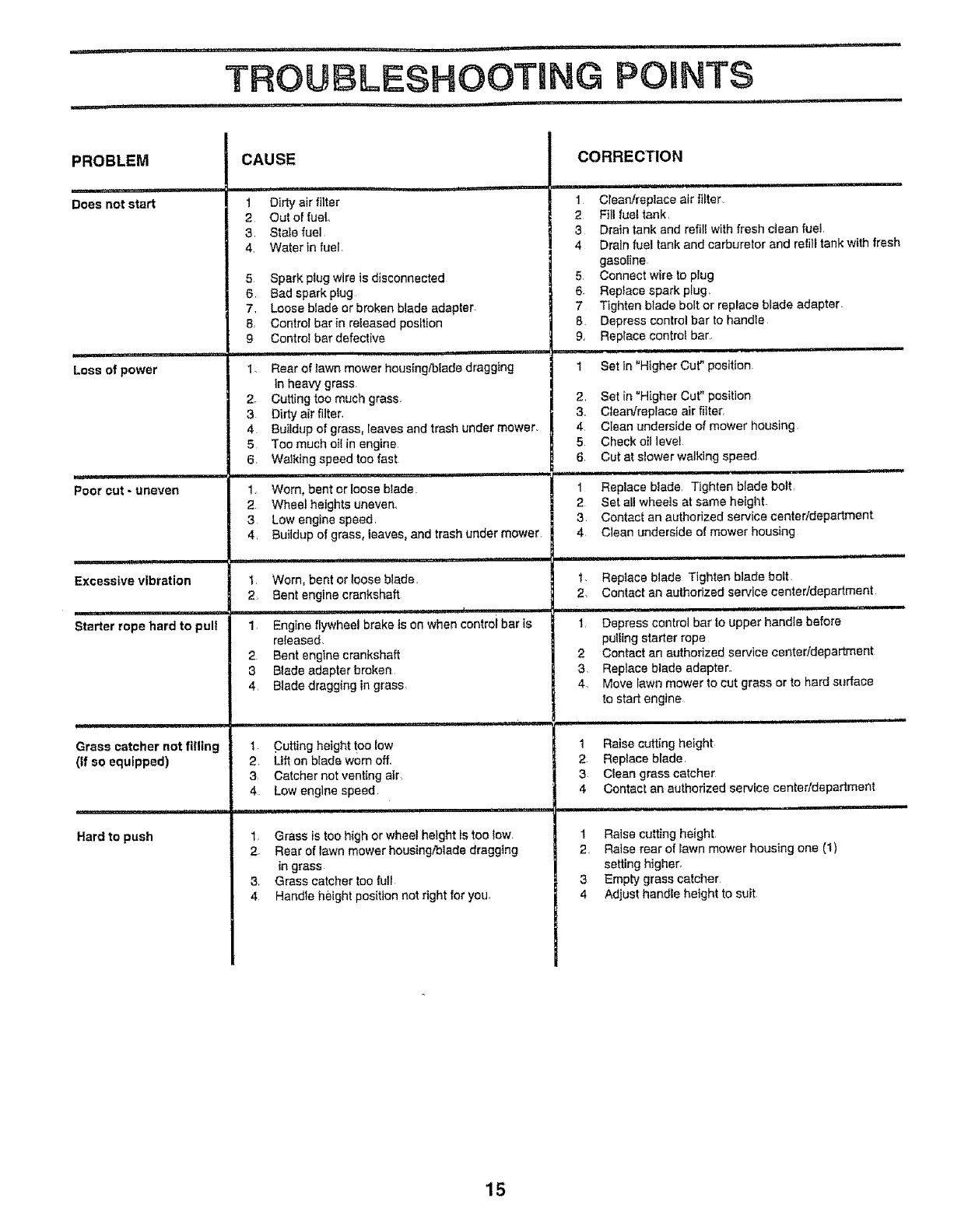= Do not operate your mower if it vibrates abnormally. Exces-