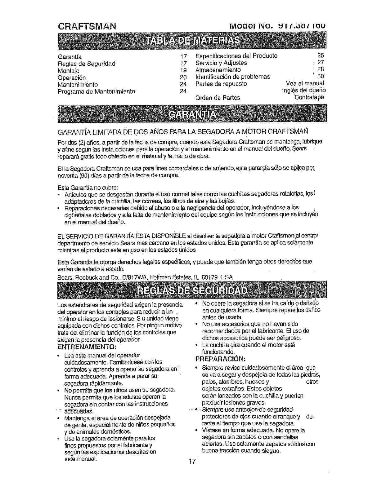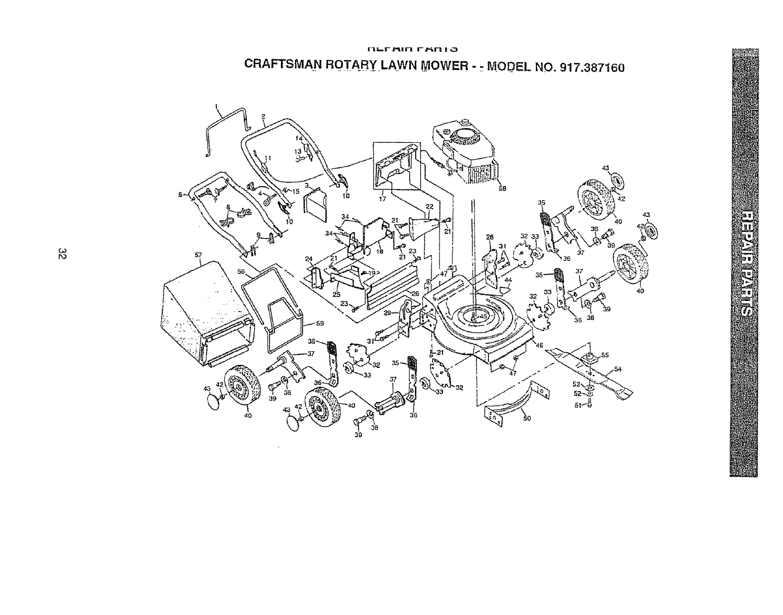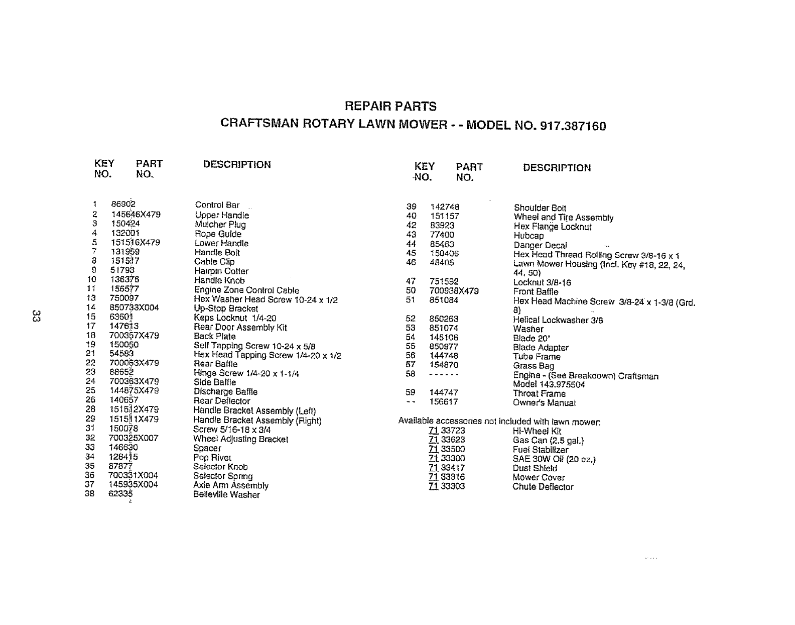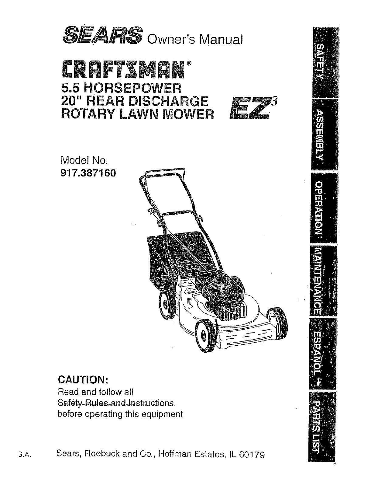 User Manual: Craftsman 917387160 917387160 CRAFTSMAN ROTARY LAWN MOWER - Manuals and Guides View the owners manual for your CRAFTSMAN ROTARY LAWN MOWER #917387160. Home:Lawn & Garden Parts:Craftsman Parts:Craftsman ROTARY LAWN MOWER Manual